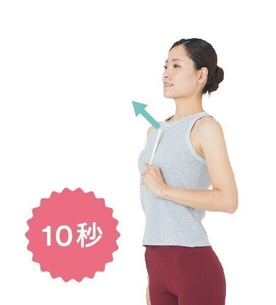 肩で大きな円を描くイメージで両肩をゆっくり10秒かけて後ろに回す。