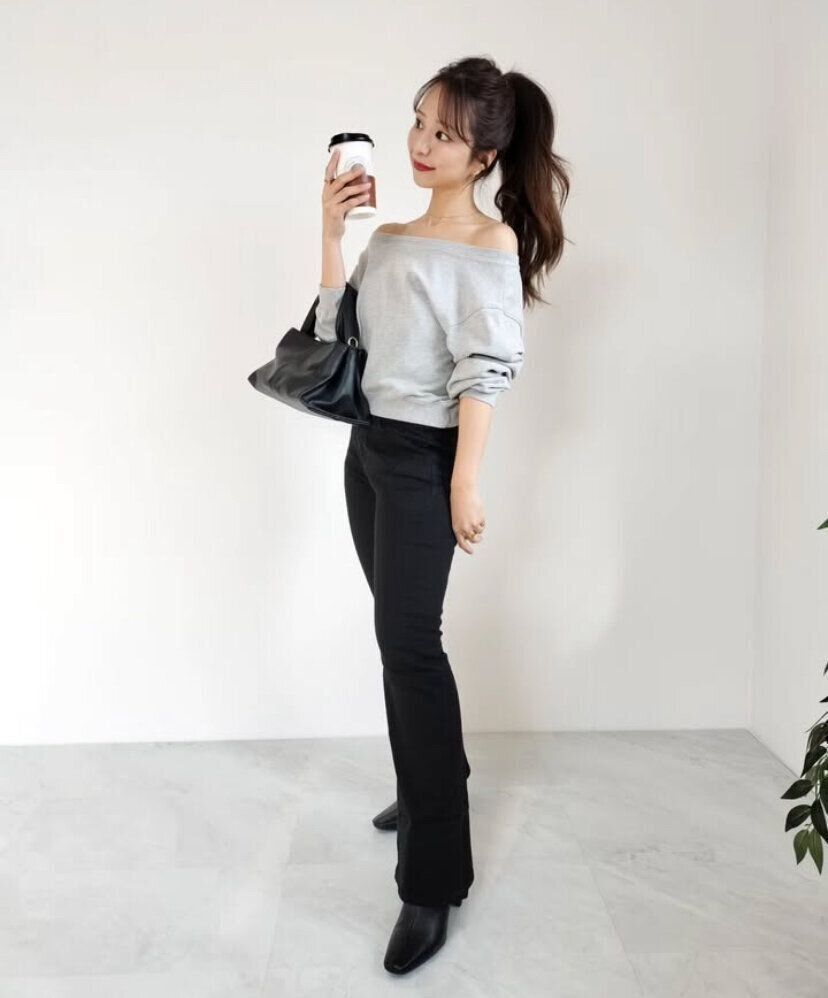 アラフォー世代には懐かしいGU 「スリムフレアジーンズ」(2,990円)は、細長さにこだわったシルエットが魅力的。オーバーサイズのトップスとあわせてもダボっとせずにメリハリのあるコーディネートを楽しむことができます。「とにかく足を細く見せたい」という人は、普段よりも1サイズ小さいサイズがおすすめ。ストレッチ性もあり動きやすいデニムパンツなので、ウエストのボタンさえクリアすればあとは履く度に馴染んでくれます。