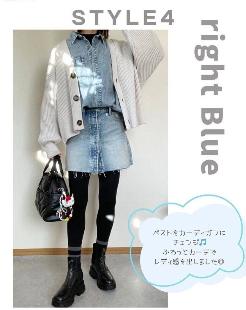シンプルなデニムシャツはシャツとしてだけでなく、アウター代わりの羽織アイテムとしても着用できるので重宝すること間違いなし。「デニムチュニックシャツナガ」(1,969円)は、お尻がすっぽり隠れるオーバーサイズのシルエットが今年っぽいおすすめデニムシャツ。おしゃれな印象を与えるデニ×デニのセットアップ風なコーディネートがおすすめ。