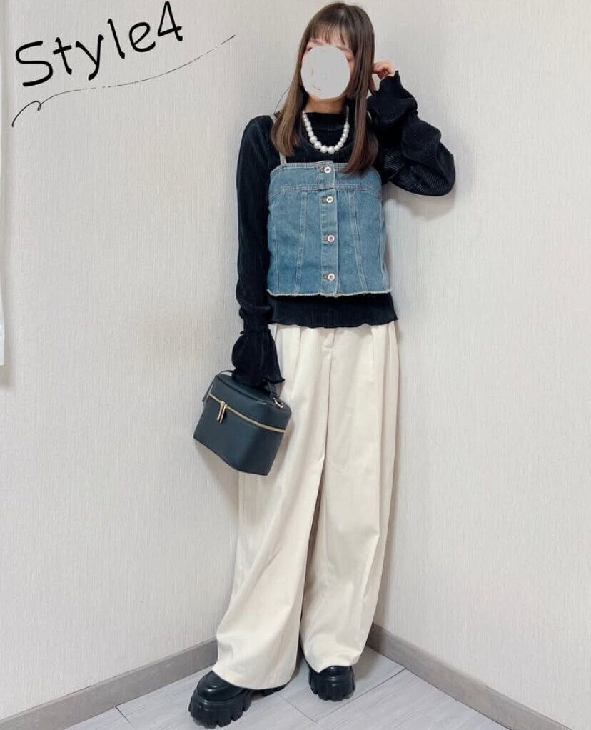 シンプルなコーディネートにデニムビスチェをプラスすることで、よりおしゃれな印象を与えることができます。コーディネートがマンネリ化している人や、何か物足りないと感じている人にピッタリ!