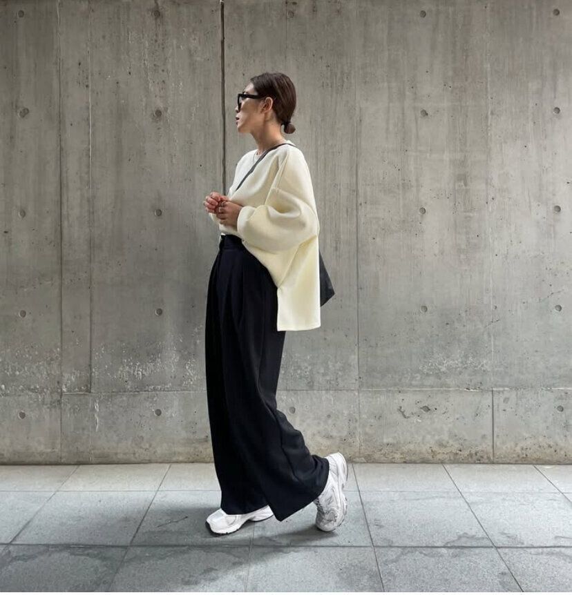 ルーズなボトムスをあわせるときは前部分だけ軽くインして着用してバランスを調節してみて。ワンランク上のおしゃれさんな印象を与えてくれます。