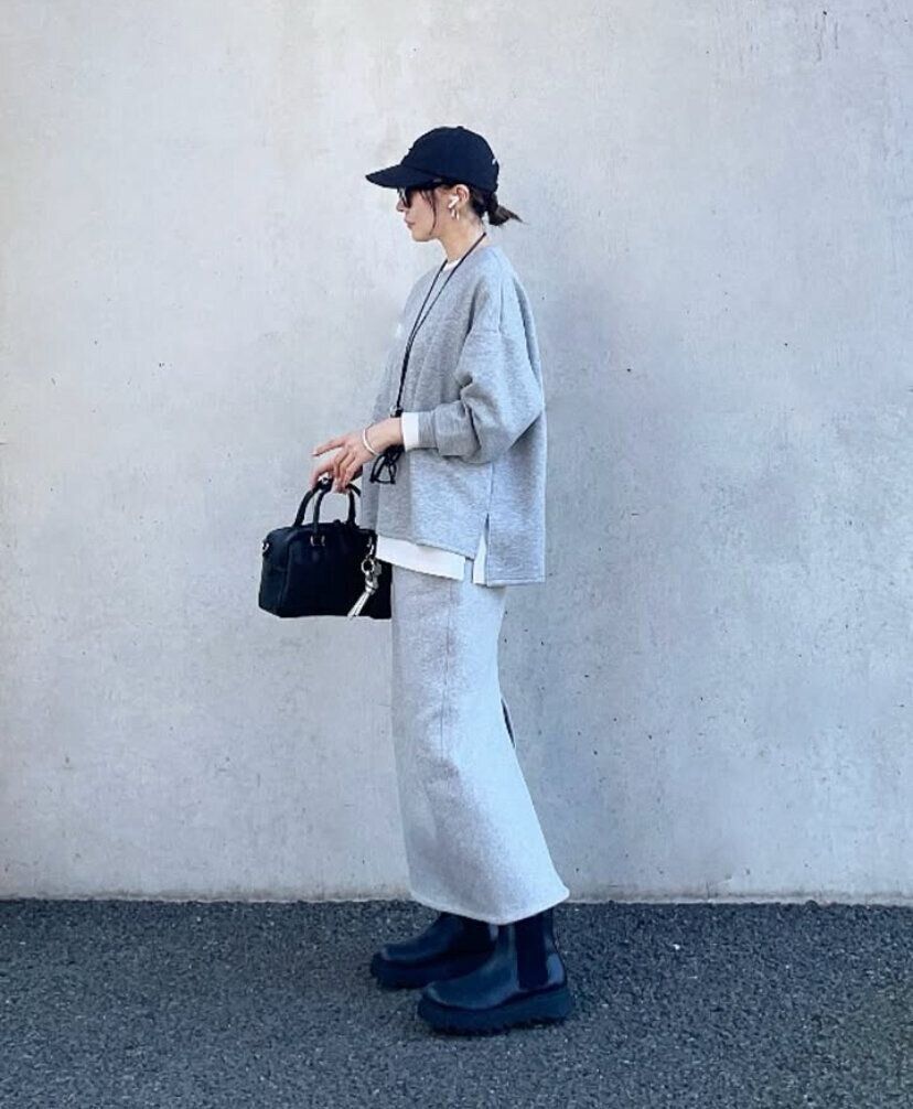 ワントーンでまとめたセットアップ風ファッションも「ソフトスウェットビッグサイズトップス」ならスウェットなのに大人っぽく上品な印象のコーディネートが完成!立体感のあるシルエットはボディラインを拾わないだけでなく、スタイルアップして見える効果も期待できます。