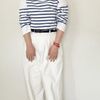 ・Tシャツやカジュアルなトップスを合わせるときこそ、ストレートやワイドシルエットで大人の仕上がりに。
