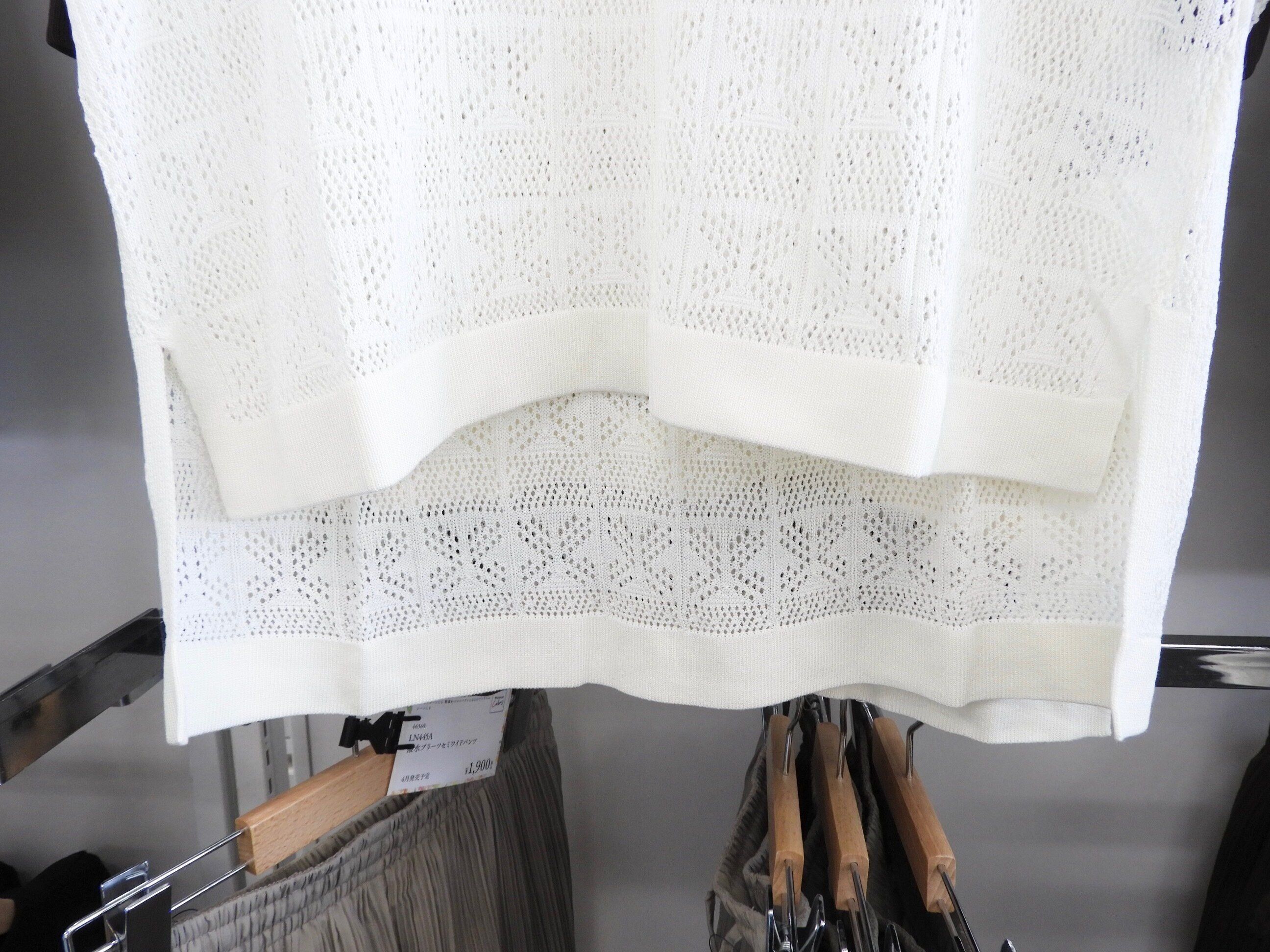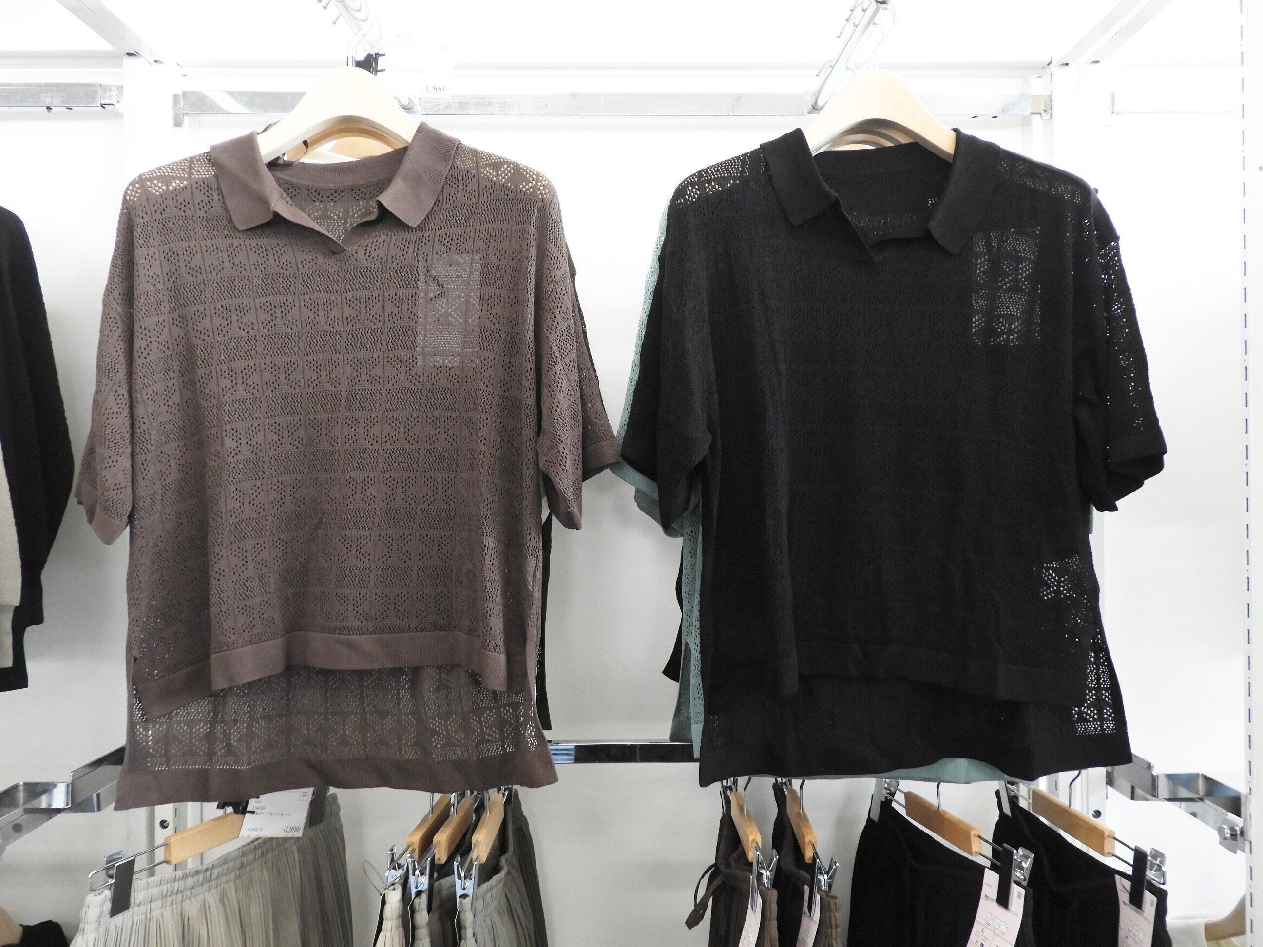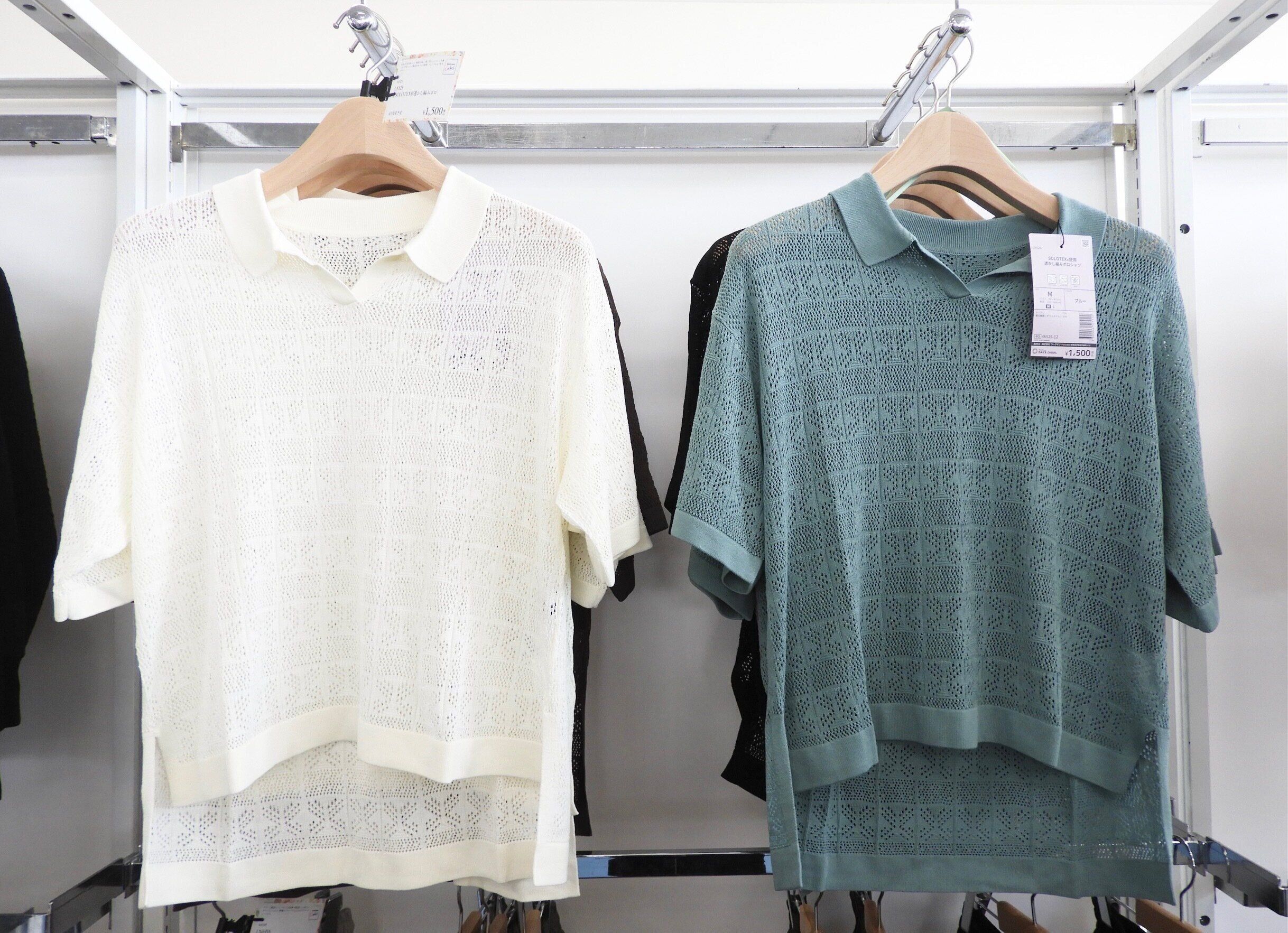 「SOLOTEX®使用 透かし編みポロシャツ」(1,500円)は、その名のとおり透かし編みデザインのポロシャツ。透かし編みは2025年春夏のトレンドアイテムなので着用するだけで流行の最先端!