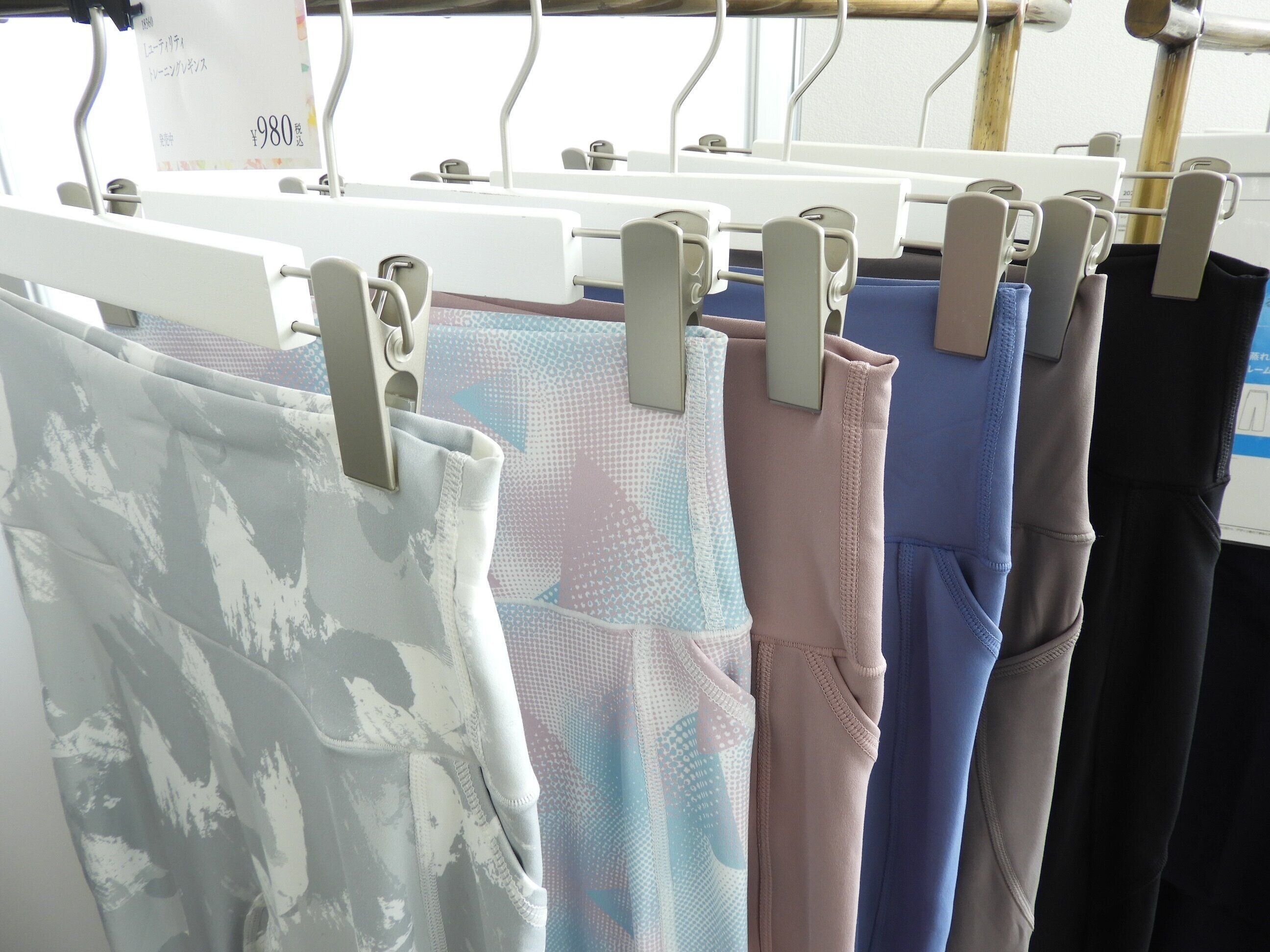 ヨガやトレーニングにピッタリの「トレーニングレギンス」(980円)は、アクティブな女性に人気のアイテム。トレーニングレギンスって人気ブランドだと1万円近くするアイテムなのに値段を聞いてびっくり!1,000円でおつりが出ちゃう…!