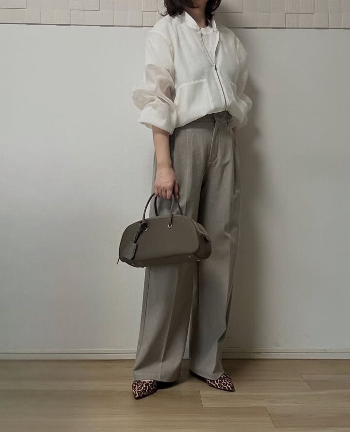 ワイドパンツにあわせれば、きちんと感の中にカ抜け感がプラスされた大人カジュアルスタイルが完成!ワイドパンツで気になる下半身をカバーしつつ、上半身はシアーブルゾンでコンパクトにスッキリまとめればおしゃれなだけでなく着やせ効果も期待できます。