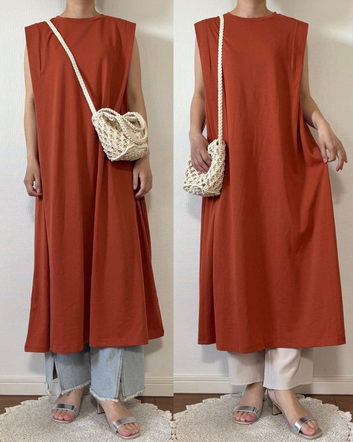そのまま1枚で着るのは楽ですが、合わせるアイテムによっては部屋着のような手抜きコーデに見えてしまいます。