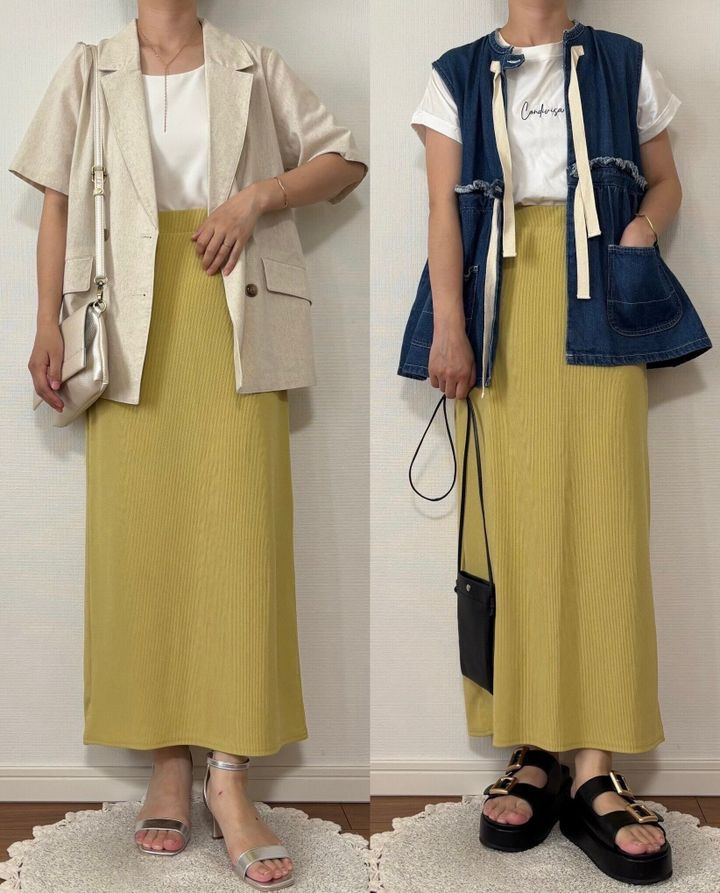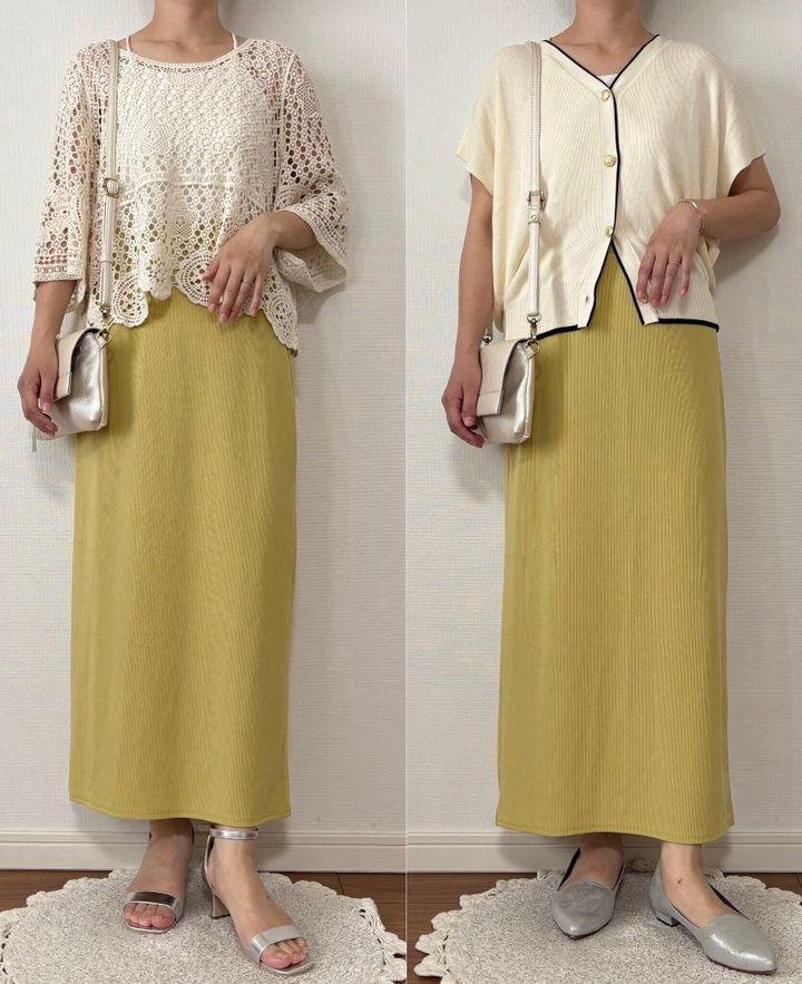 スカートの形はフレアよりもナローシルエットが大人っぽくてトレンド感もありますね。