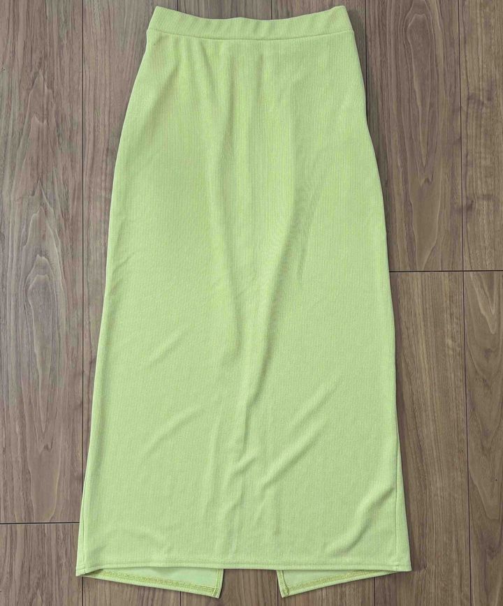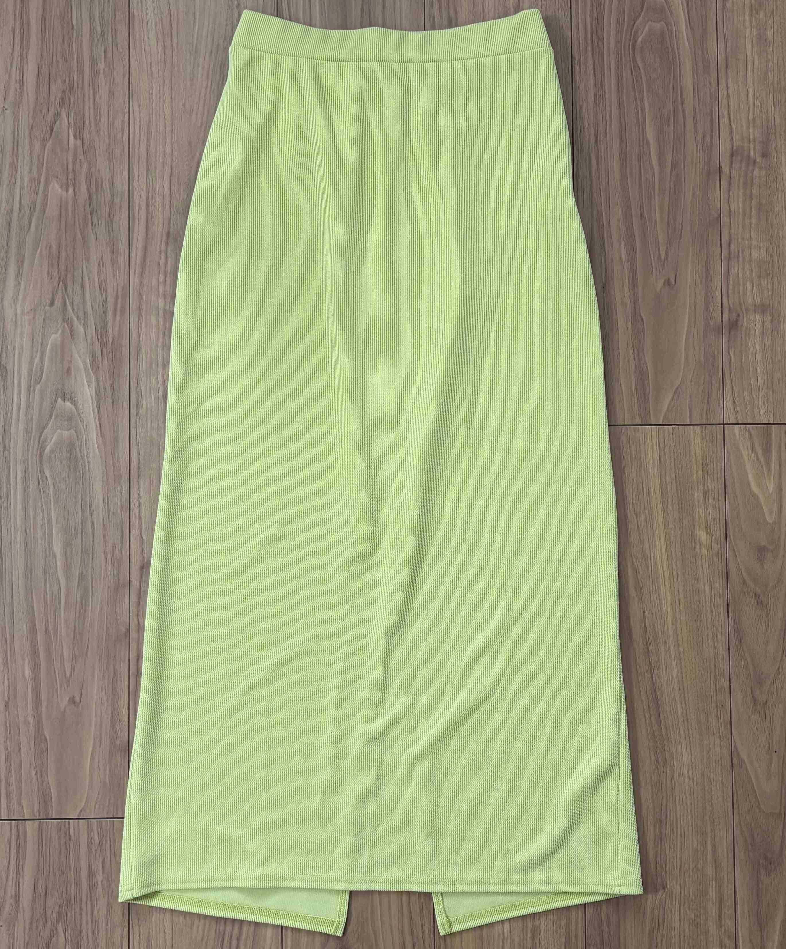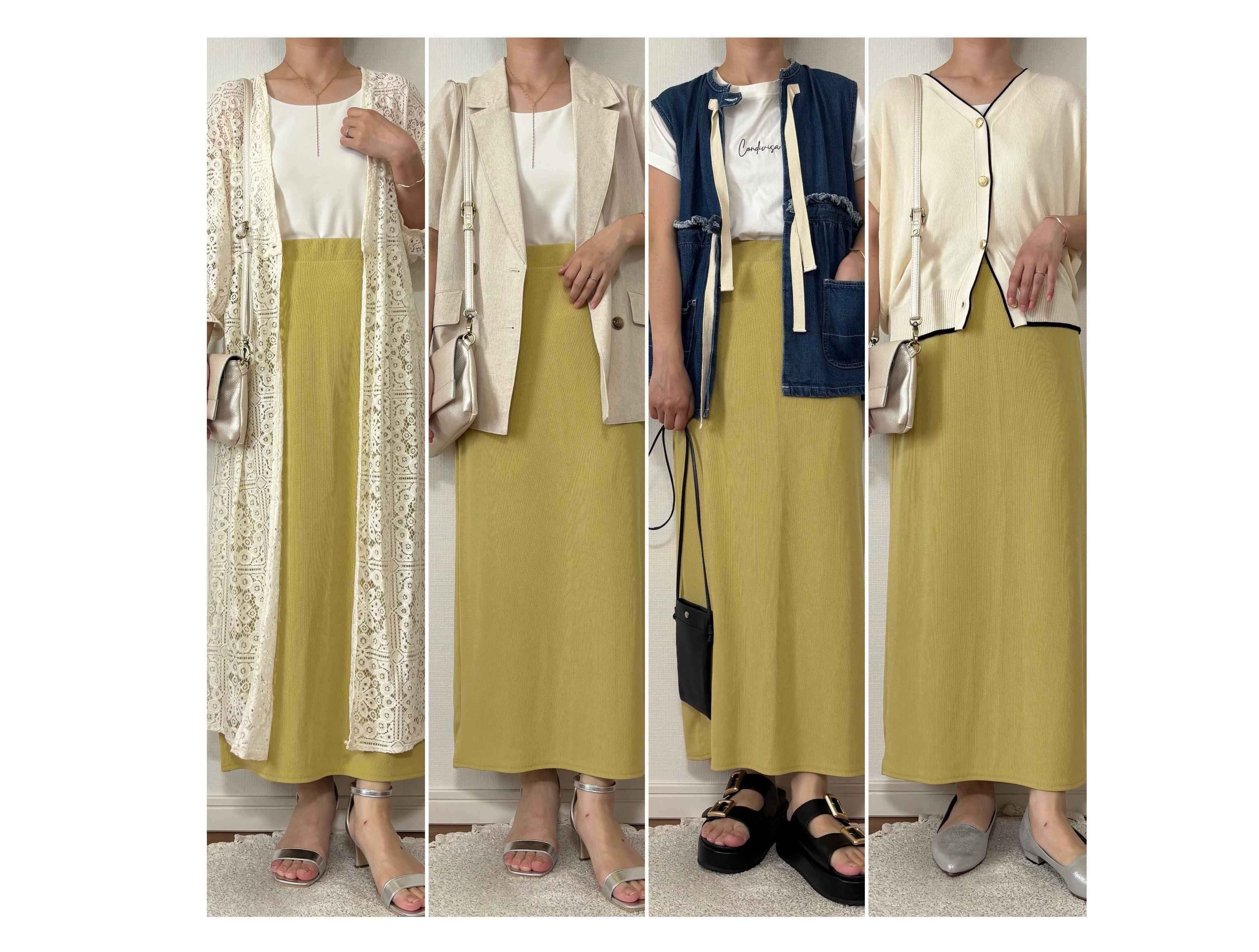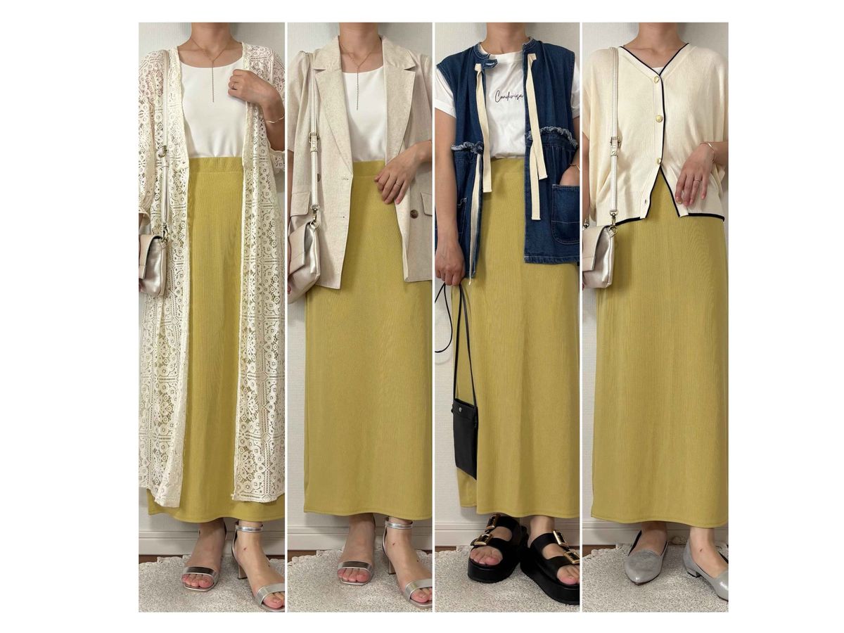 今回おすすめするのはこちらのイエローのナロースカート。柔らかく肌馴染みのいいカラーが大人かわいい1枚です。