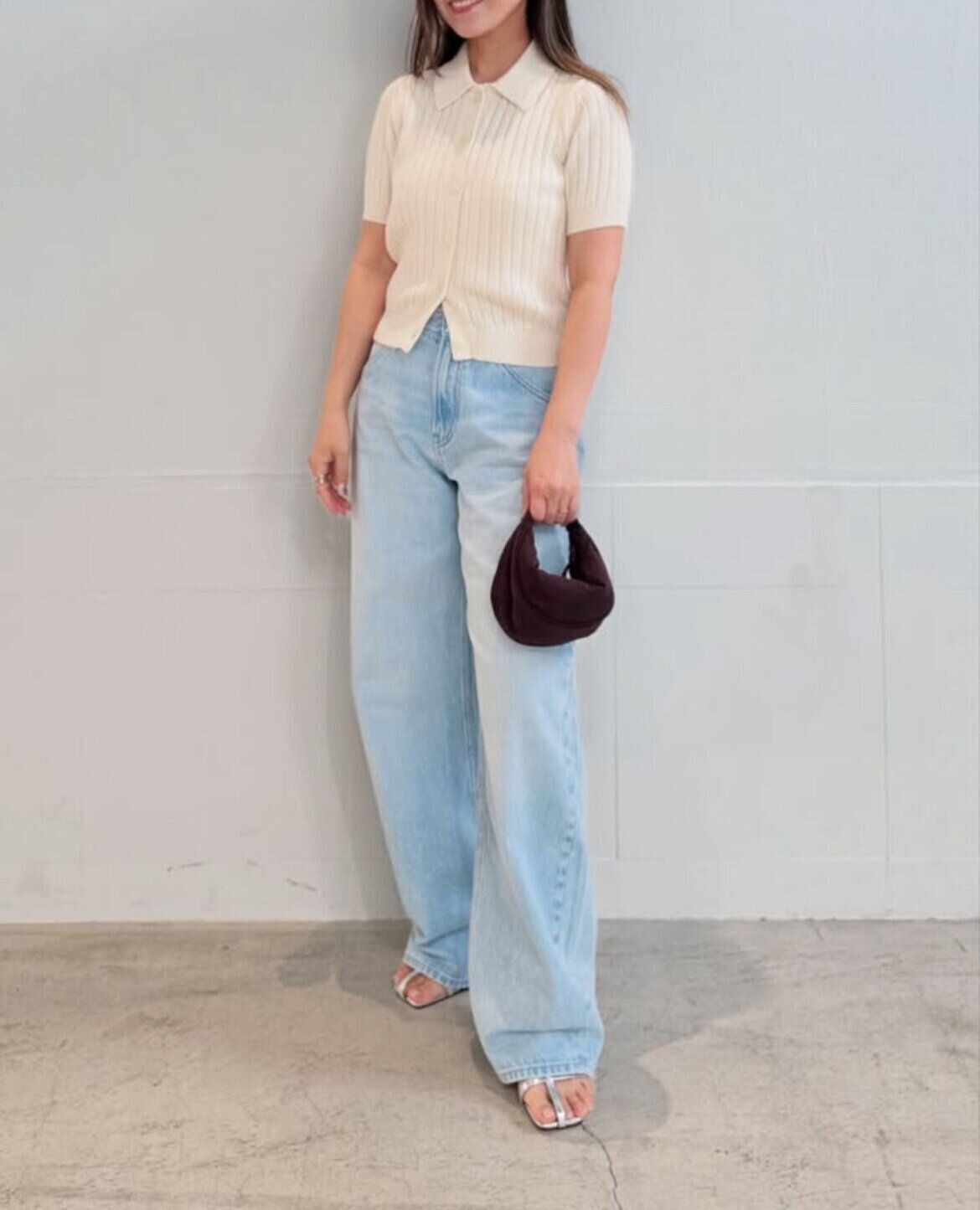 どちらかといえばルーズなシルエットの「バギーカーブジーンズ」には、タイトなトップスをあわせるとメリハリのあるシルエットでスタイルアップ効果も期待できちゃう♪コンパクトなトップスは華奢な印象を与えてくれるので、レディライクなデニムスタイルが完成します。