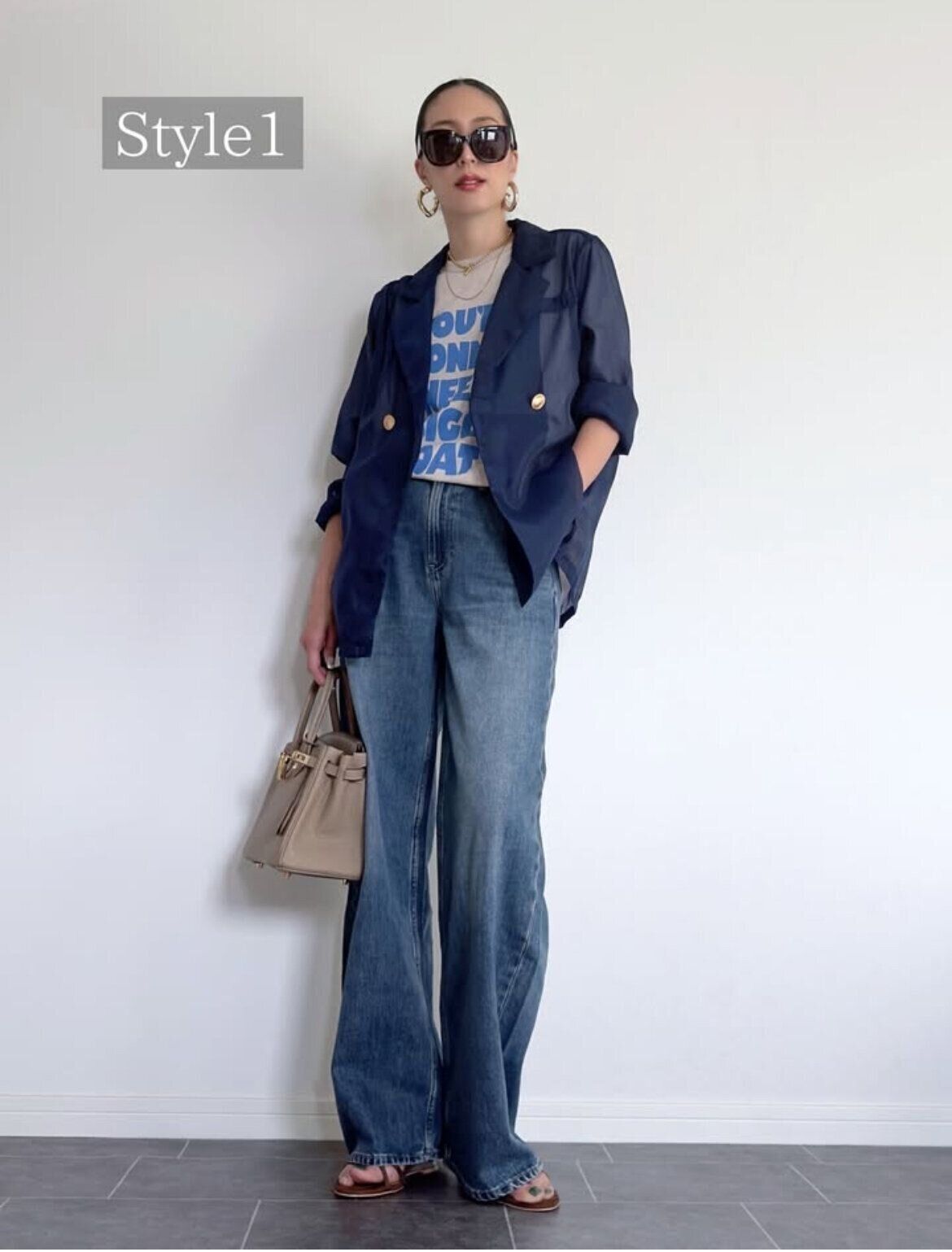 きちんと感の強いジャケットに「バギーカーブジーンズ」をあわせれば、コーディネートに程よい抜け感がプラスされスタイリッシュな印象に。「バギーカーブジーンズ」をクールに着こなすならジャケットスタイルがマストです。2025年は夏用の半袖ジャケットやシースルー生地のジャケットが多く登場しているので、トレンド感もバッチリ抑えることができます。