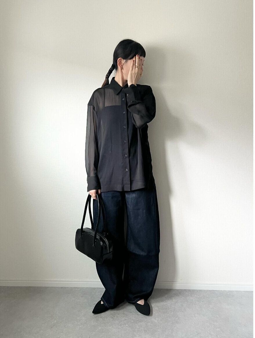 ブラックの「シアーシャツ」も、晩夏のデニムスタイルにピッタリの1枚。着用している本人は暑くないけれど、夏っぽさを感じないアイテムなので初めてシアーシャツにチャレンジするという人にもおすすめです。暑い日が続く今の時季は、デニムのカラーやシャツのカラーを秋っぽくシフトチェンジすれば季節感を取り入れたコーディネートが完成します♪