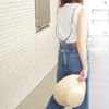 上下定番の、シンプルなコーディネートのときは、ベルトを加えてみるのもおすすめ。