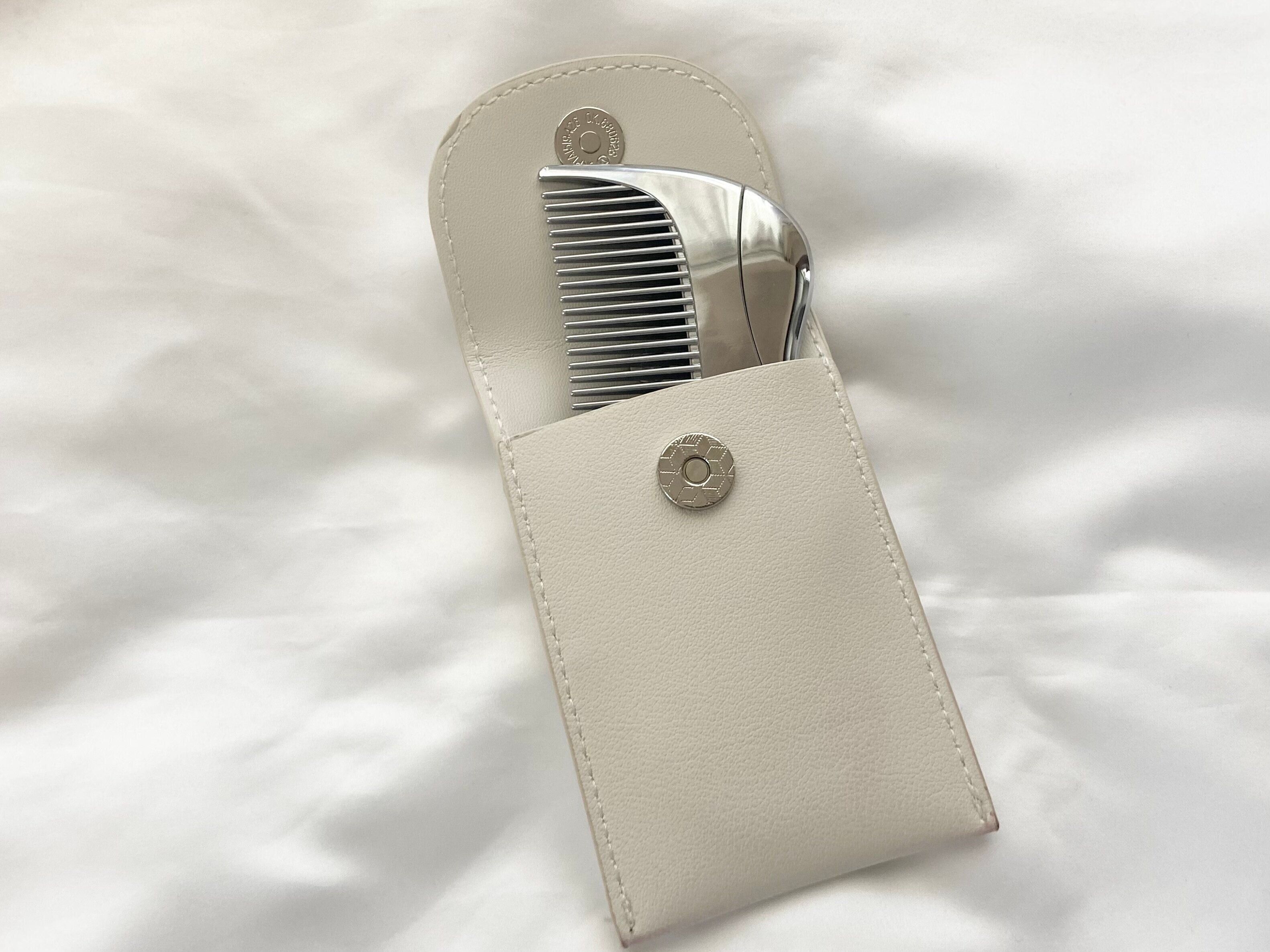 最近3COINSで専用ケースも登場。ケースに入れることで汚れを気にせず毎日持ち歩いています。お手洗いに行ったときにサッと梳かすだけで髪表面の光沢感をアップ。お直しアイテム必需品です。