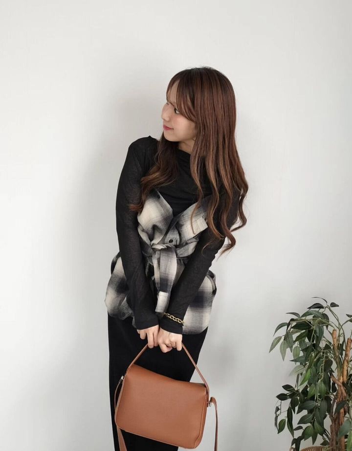 おしゃれ上級者な印象を与えたい人は、「フランネルシャツ」をビスチェ風に巻く着こなしもおすすめ。ポイントはシャツ以外のアイテムはカラーを統一&シンプルなデザインのアイテムをチョイスすること。そうすれば、一見難しそうなビスチェ風巻きもやりすぎ感なく、コーディネートに溶け込みます。新たな着こなしにチャレンジしてみたい人はトライしてみて♪