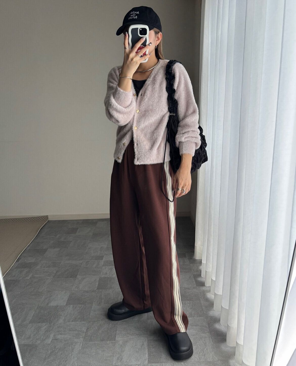 存在感のあるシャギーカーディガン。特にカラーアイテムはコーディネートの主役級!「派手なカラーを選ぶのはハードルが高い」という人は、ベビーピンクなどの薄いピンクを選ぶのがおすすめ。暗くなりがちな秋冬のコーディネートに明るさをプラスしてくれる優秀アイテムですが、あわせるアイテムのカラーはベーシックなカラーなら何でも相性◎。カラーアイテムの中で、着回し力やあわせやすさNo.1。