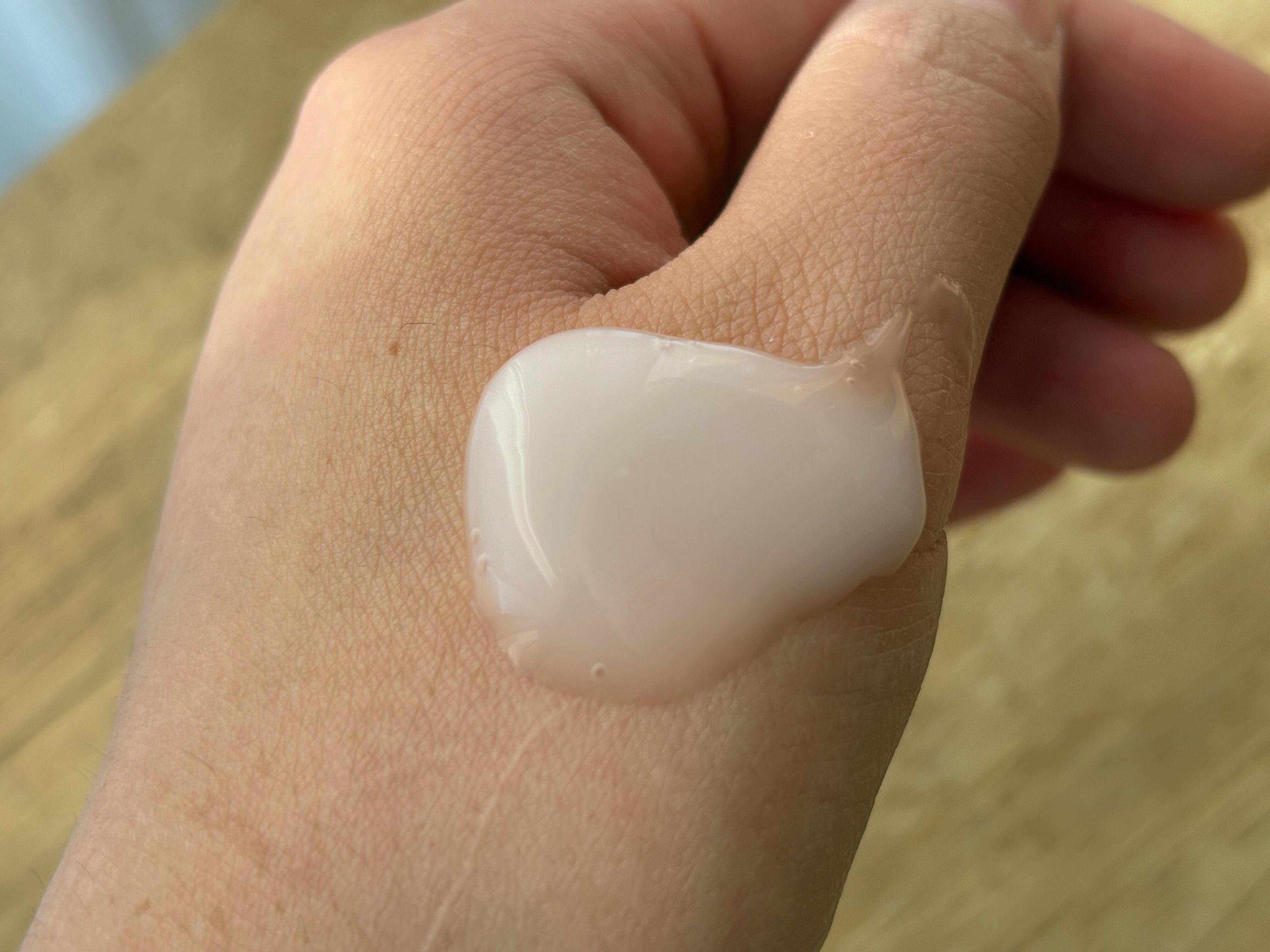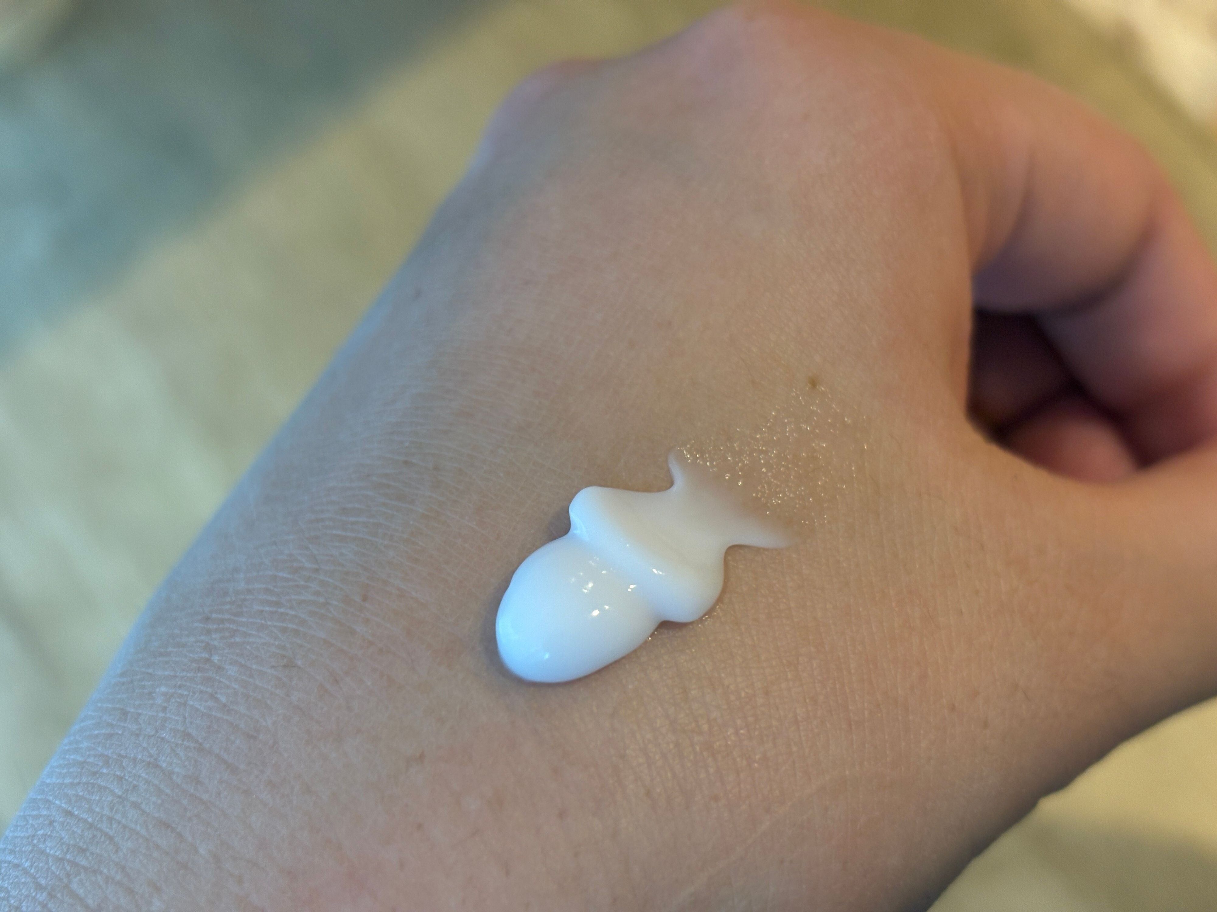 見た目はこっくりとしたクリームですが、肌にのせるとみずみずしく重さを感じません。ベタつかずしっとり潤うので、乾燥が気になる方にもぴったり。メイク前のスキンケアにも使いやすいです。