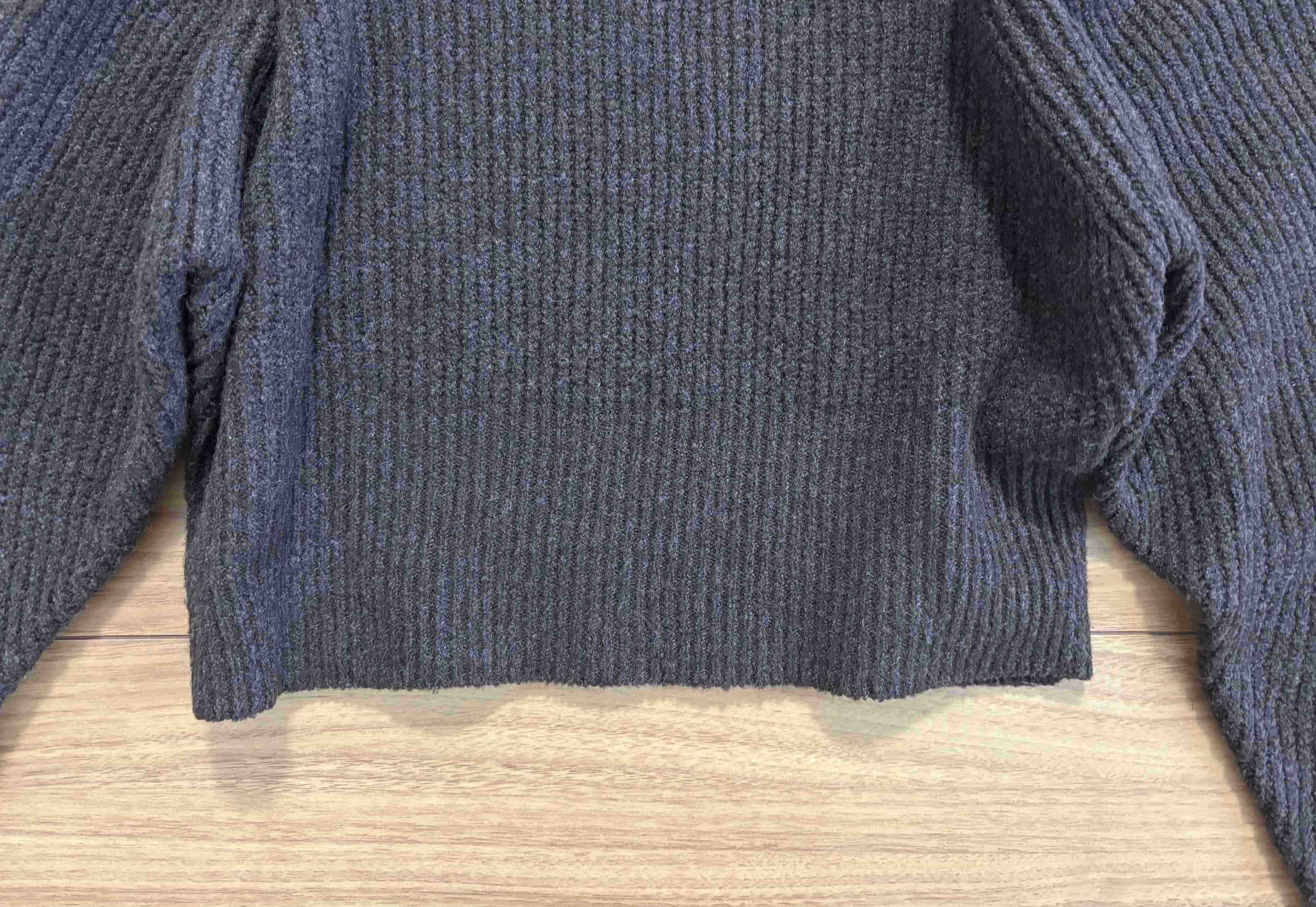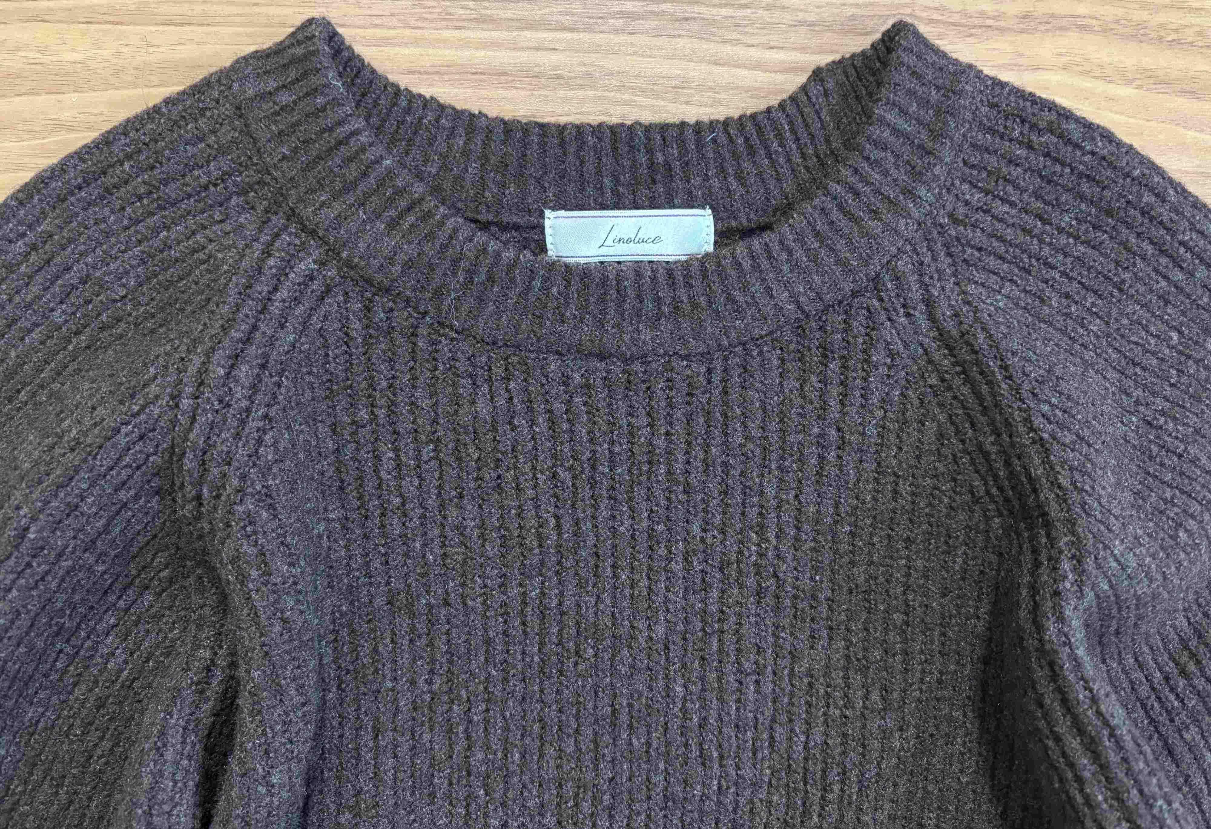 クルーネックにリブの編み地がカジュアルな印象のニットです。