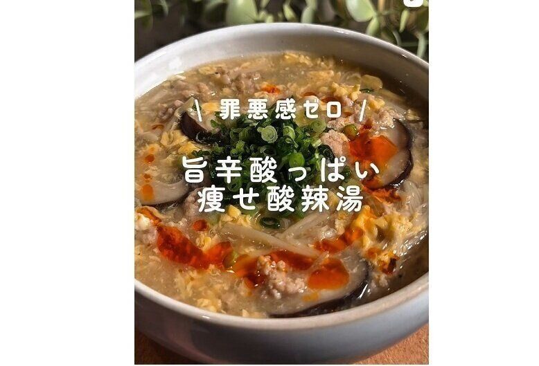 「ダイエット中でもガッツリ食べたいときは、これを食べて」とdiet_koyuさんがおすすめする、「旨辛酸っぱい痩せ酸辣湯」のつくりかたを教えてもらいましょう。