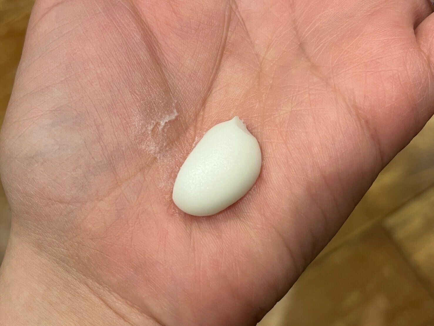 中身を手出してみると、一見こっくりしたクリームのようですが意外にも伸びがよく、まるでジェルのようなさらっとしたつけ心地です。