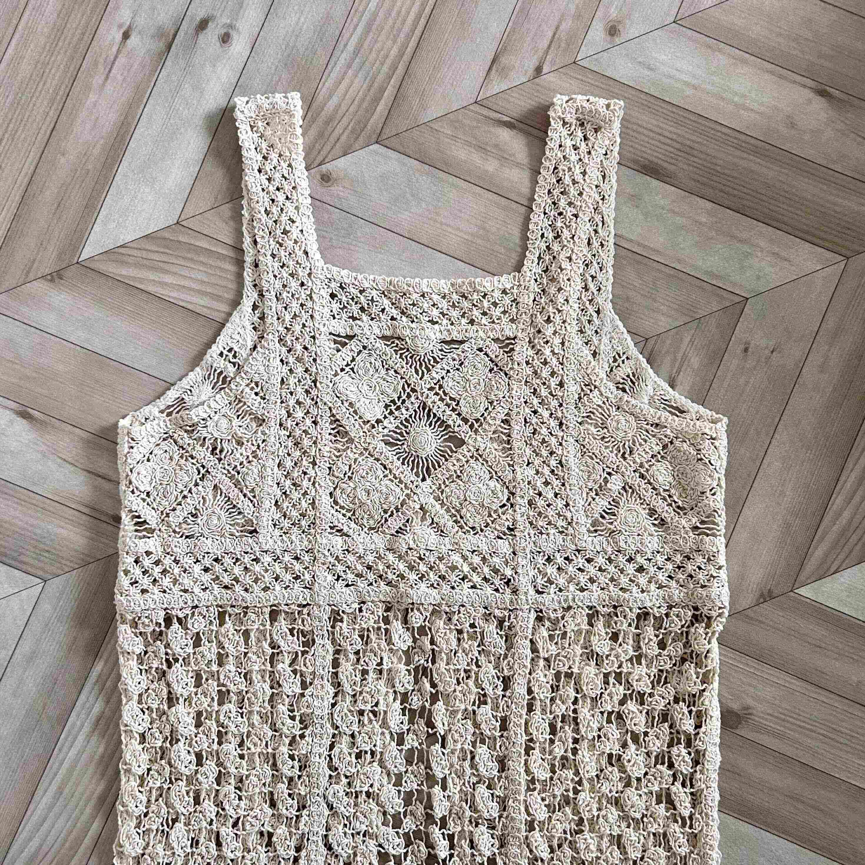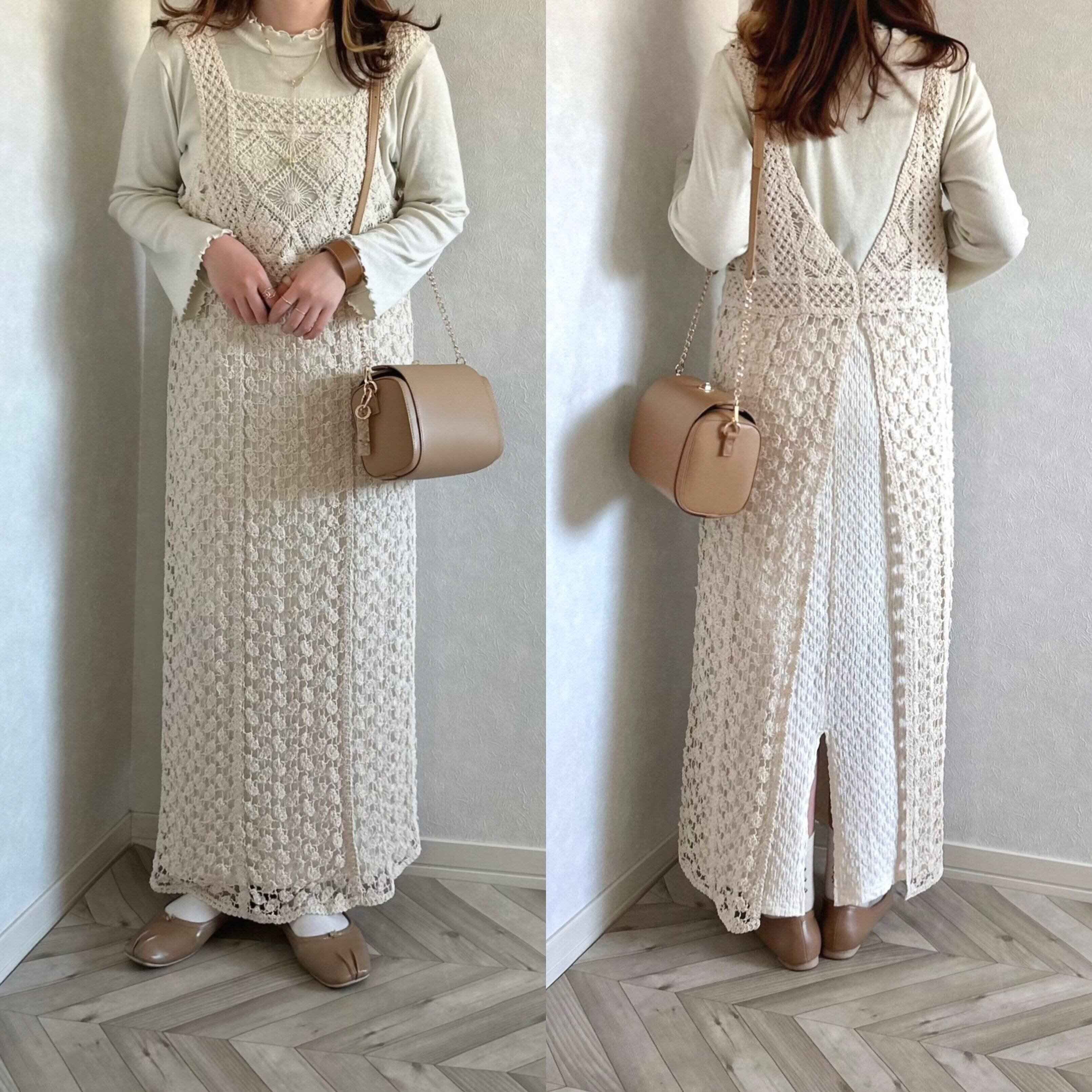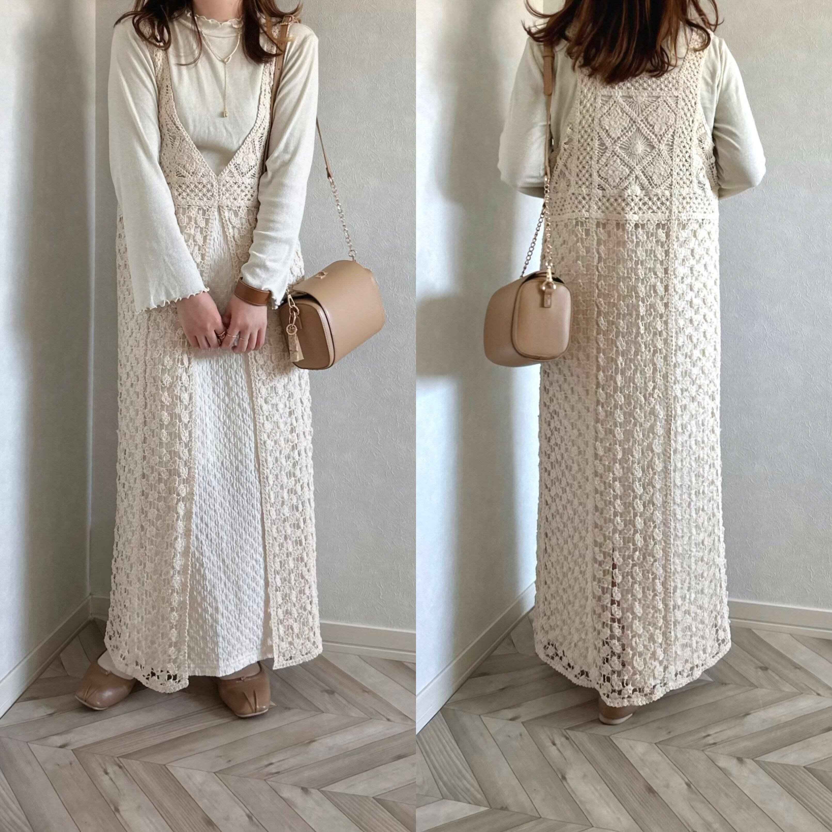 久しぶりに執筆させていただくアイテムはとってもかわいいクロシェ編みロングジレです。