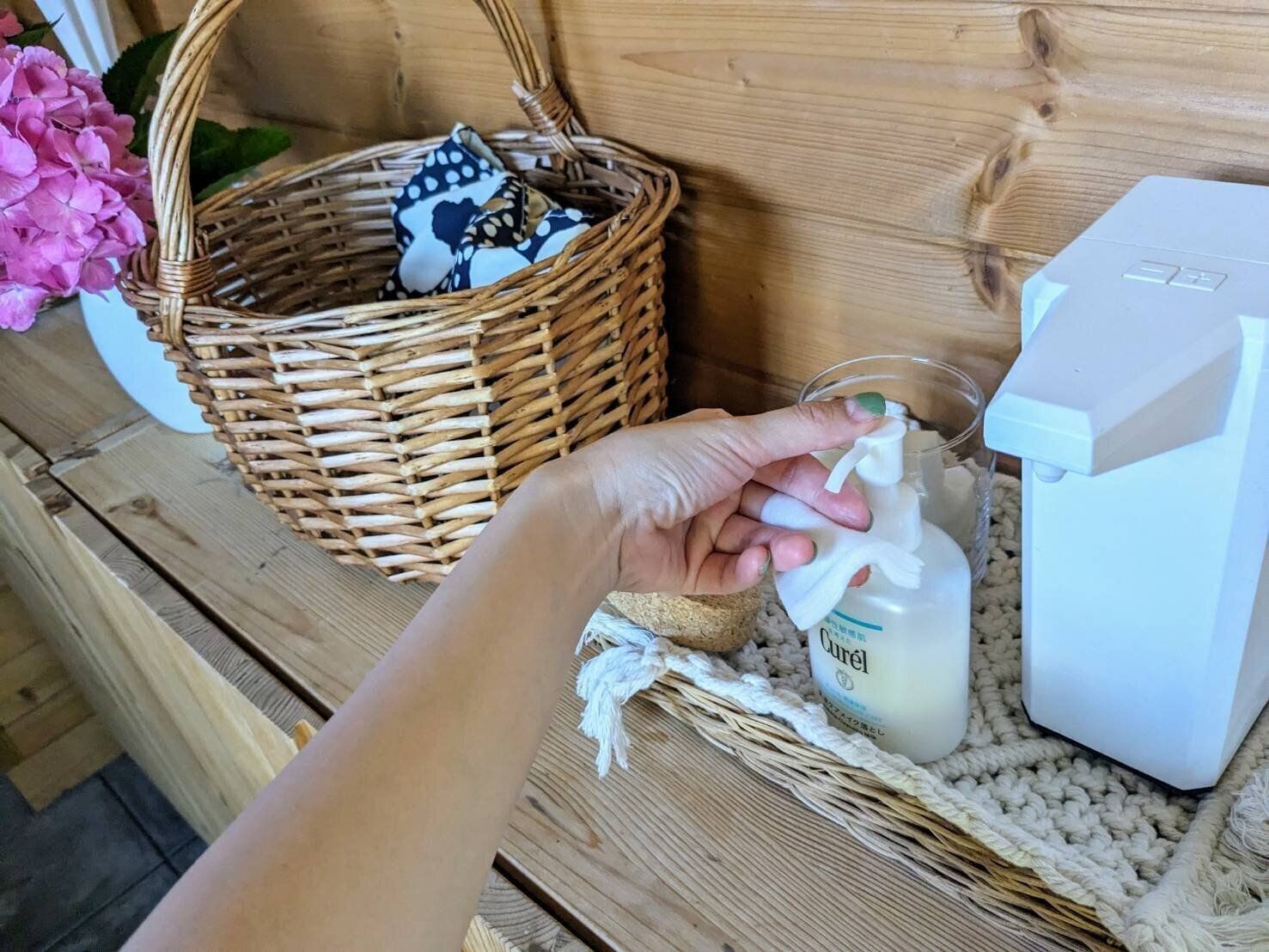 やり方はとっても簡単!コットンに3〜4プッシュして拭き取るだけです。水も使わないので、小さな子どもでも嫌がることなく、ササっと日焼け止めを落とすことができます。また、花粉が辛い時期も玄関でいち早く花粉を落とすことができ、快適です。