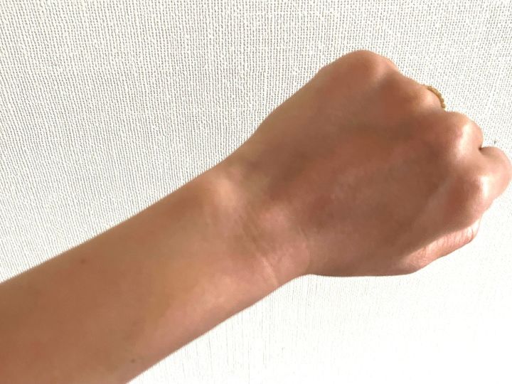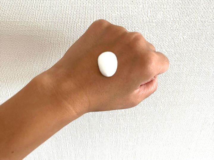 日焼け止めの色は白。一見、白浮きしてしまうのでは?と心配でしたが、のばしていくとほぼ透明に。