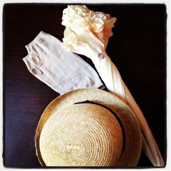 日傘・帽子・アームカバーのフル装備で紫外線対策!