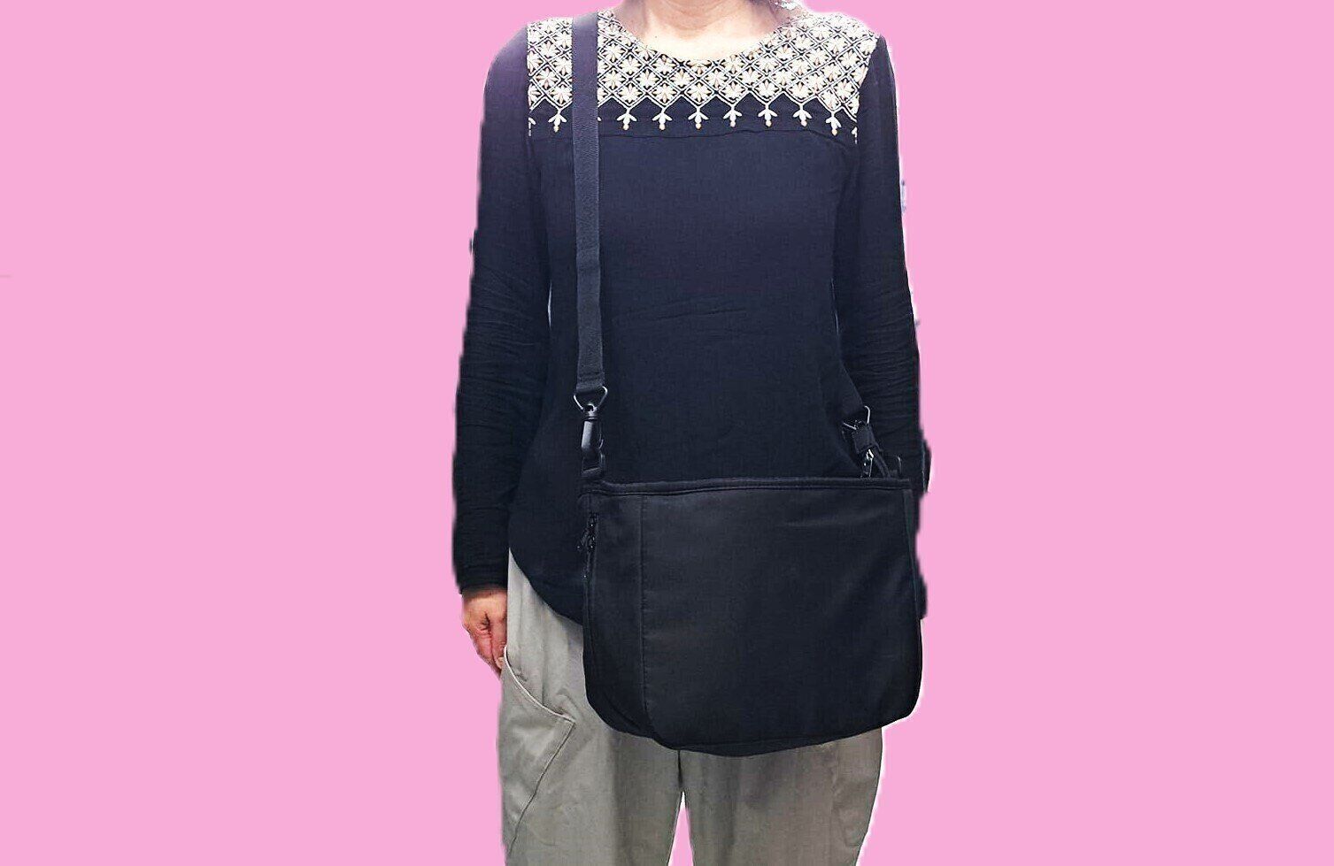見た目はシンプルな普通のショルダーバックとして使用できます。