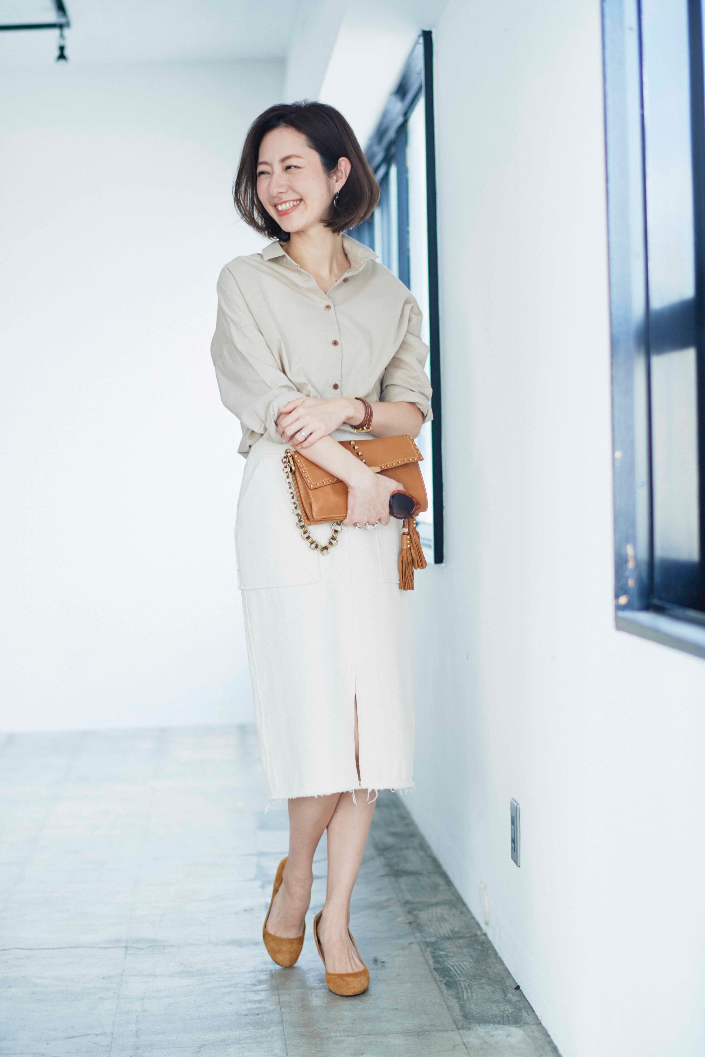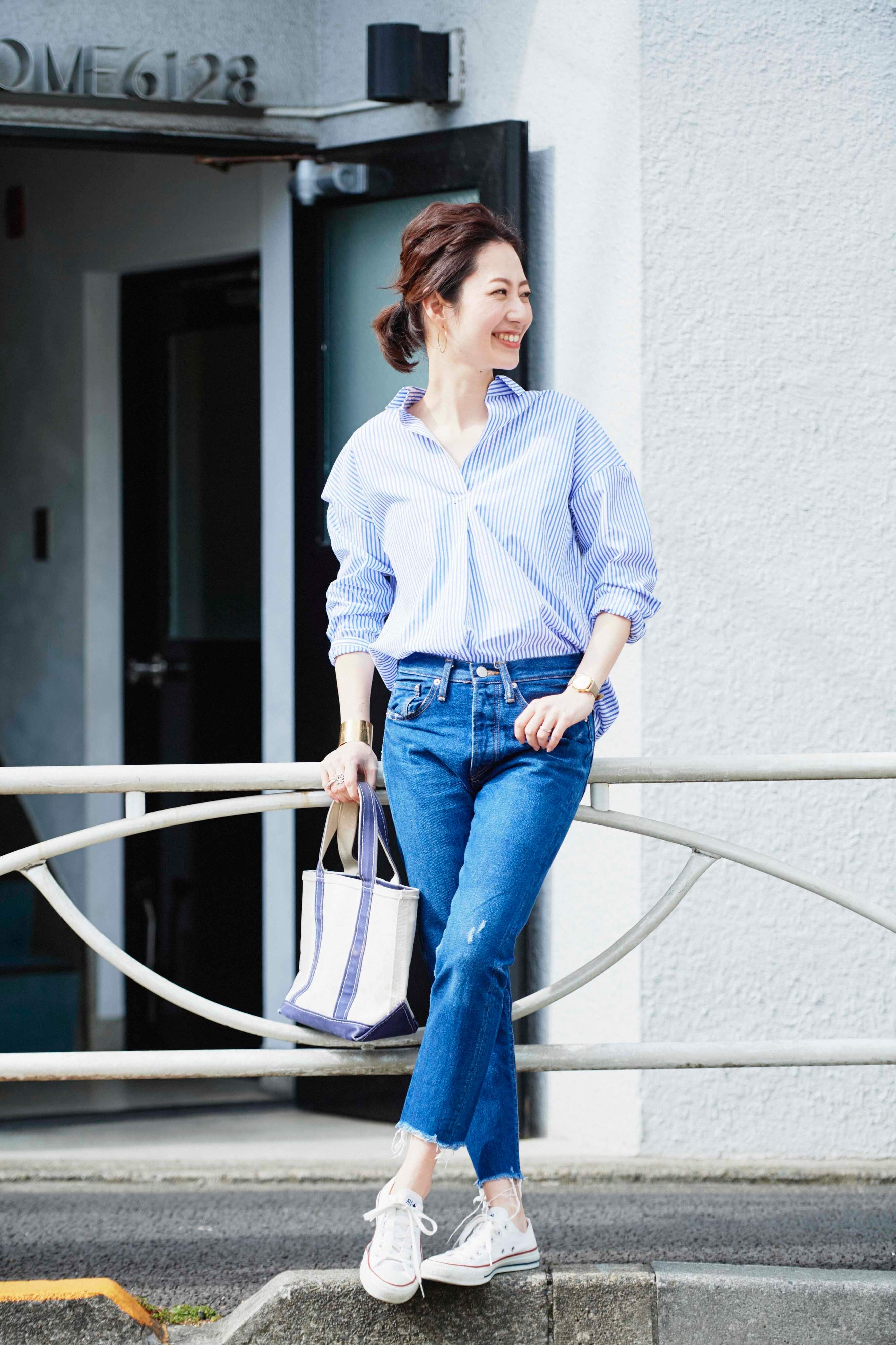 参照:『サンキュ!』5月号「似合うシャツが1枚あれば、おしゃれな人になる!」より一部抜粋 監修・モデル/林智子 撮影/林ひろし ヘア・メイク/浜田あゆみ(MELANGE)取材/米倉沙矢