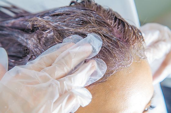 「準備が終わったら、染める直前に混合液をしっかり混ぜて。意外と知らない人が多いのですが、塗るときには、利き手と反対の上側のパートから塗り始めると腕が汚れにくくてやりやすいですよ♪」「生え際など気になるところは量も多めに。生え際→分け目→内側と、パートごとに塗っていけばOK。」