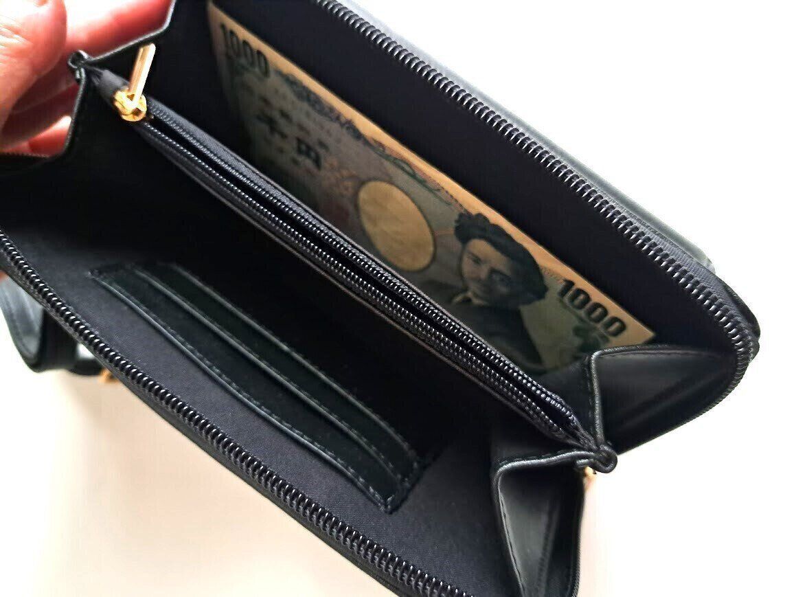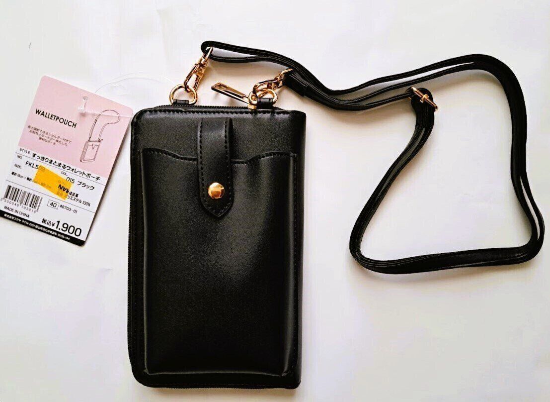 最近、ひんぱんに目にするスマホが入るショルダーですが、スマホだけが入るものは比較的お安く、どこでも手に入ります。ただこれは、お財布のようにしっかりとしたファスナー付きのポーチで金具も金色なので、非常に高見えする商品になっています。