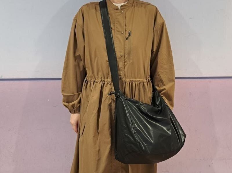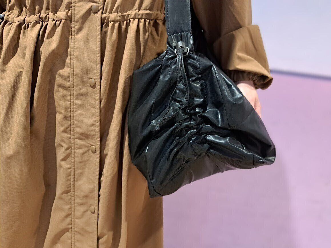 もちろんそのままでも使い勝手はいいのですが、バッグのサイドは、シャーリング加工になっています。ヒモで調節してみると、ボリュームのあるふわふわな雰囲気のバッグにもでき、PUレザーが高級感を演出してくれ、非常に高みえするコスパ最高のバッグです。