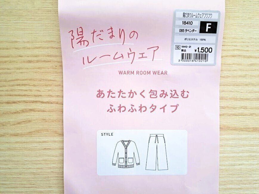 ふわふわのルームウエアが上下セットでなんと1,500円という安さ。