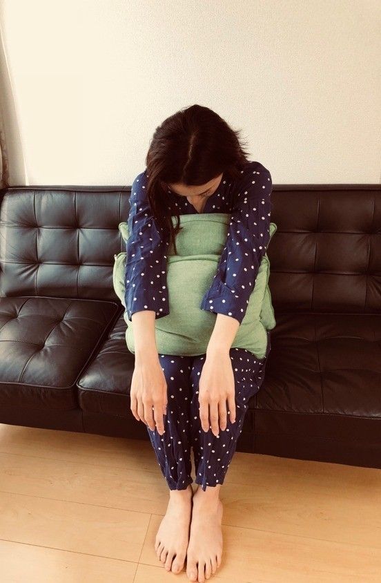 椅子やソファなどにこしかけます。クッションを2つ抱きかかえ、楽なところに手をおきます。ゆっくり深呼吸を3回繰り返します。