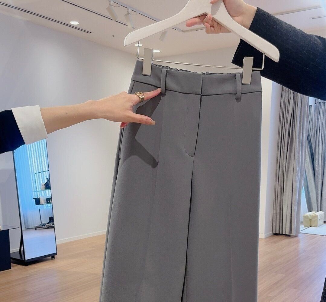 スティックパンツ・ワイドパンツ・テーパードパンツと個性の異なる3つのシルエットがあり、それぞれのシルエットに合わせて美脚に見せるために、センタープレスの入れ方を変えているのもこだわりなのだとか。