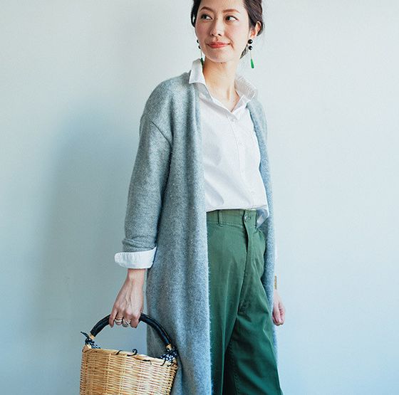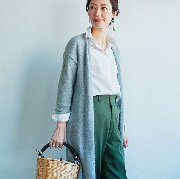 シャツ1枚で着るにはまだ寒いこの時期のはおりには、ロングカーディガンを採用。縦長のシルエットで着こなしをおしゃれにアップデート。部屋着にしか見えないパーカーとは、お別れを検討して