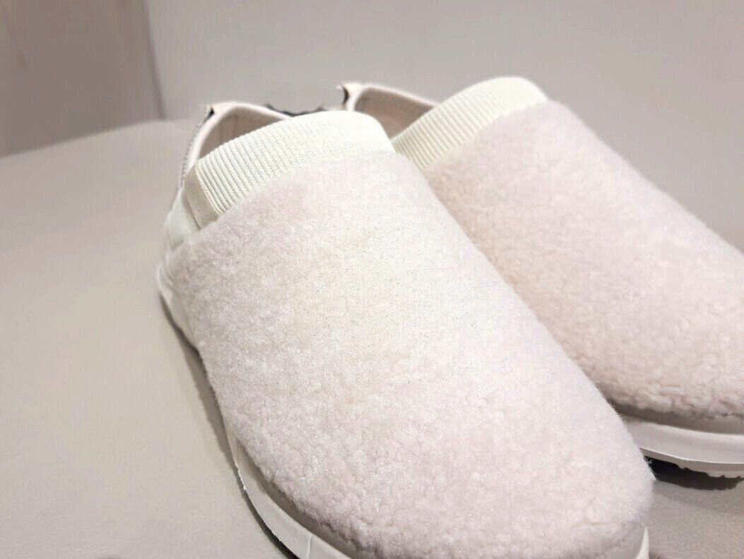 トレッドモックは、かかと部分を踏んでスリッパ・サンダルスタイルで履けるのが特徴なのです。今までのシリーズも大人気ではあるのですが、今回のものはより冬ぽいボアが特徴でかわいいので、大注目でした。