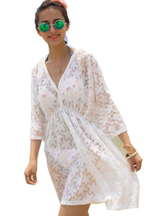 どうしても体型が気になる方には、水着の上からビーチドレスを羽織ってしまうのもおススメです。Jingjing1の透け感あるレース素材のビーチドレスなら、水着がほんのり透けて見えてセクシー。風に揺れるビーチドレスがエレガントさも演出してくれます。