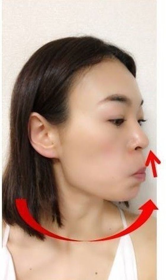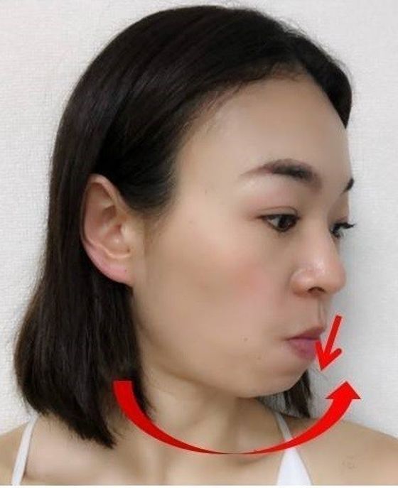 1と同じように顔を横に向けて、舌を口の中で上あごのほうへ動かします。