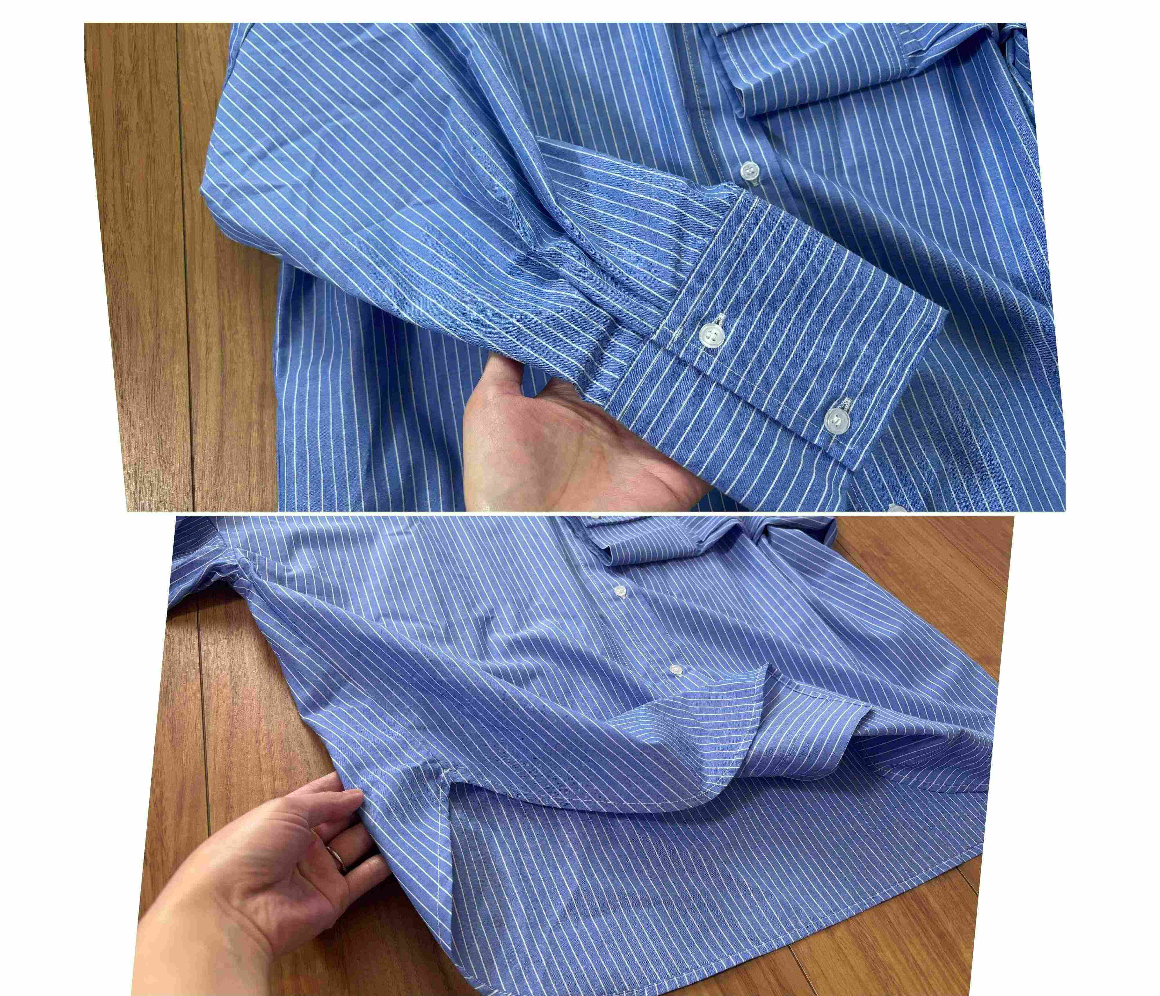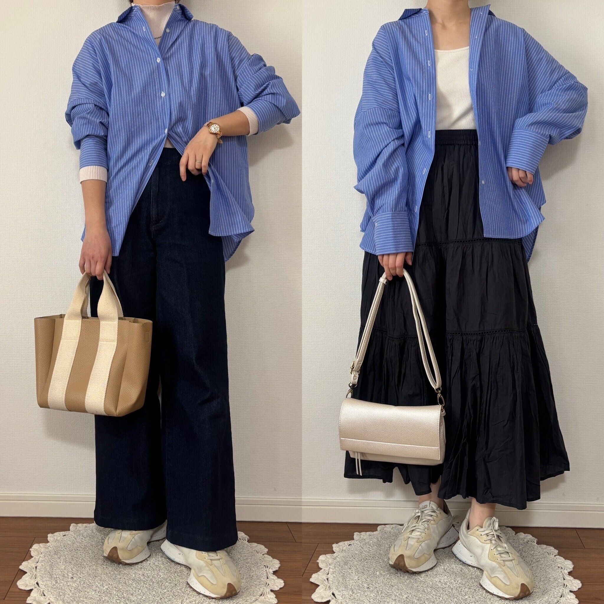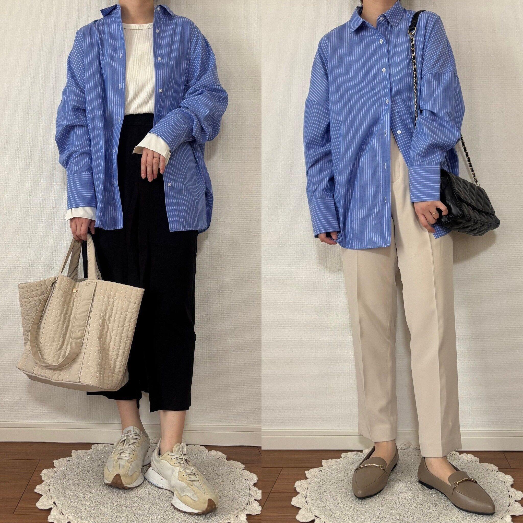 今回は今買うと春先まで着回しできるブルーのストライプシャツをご紹介します。