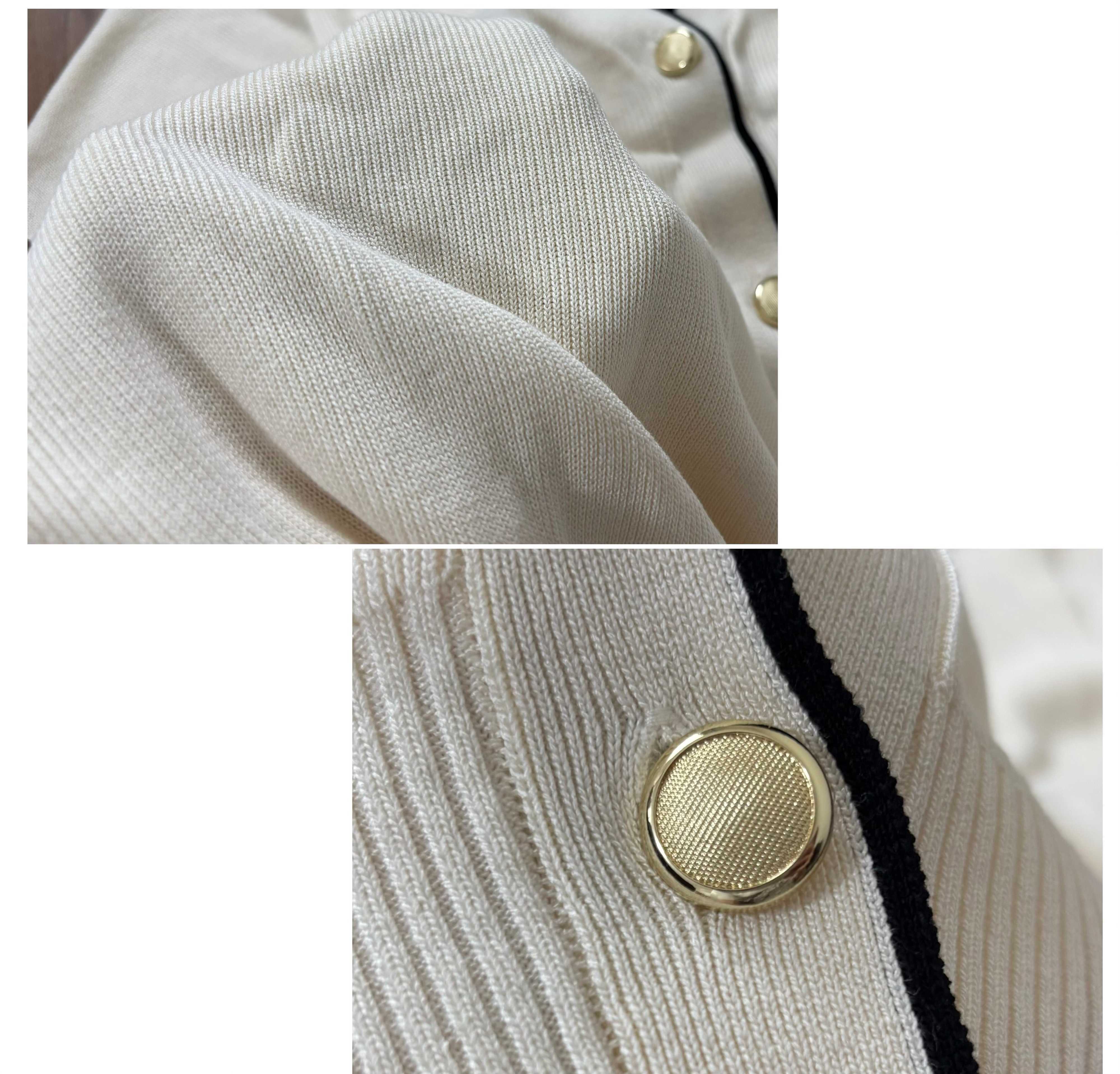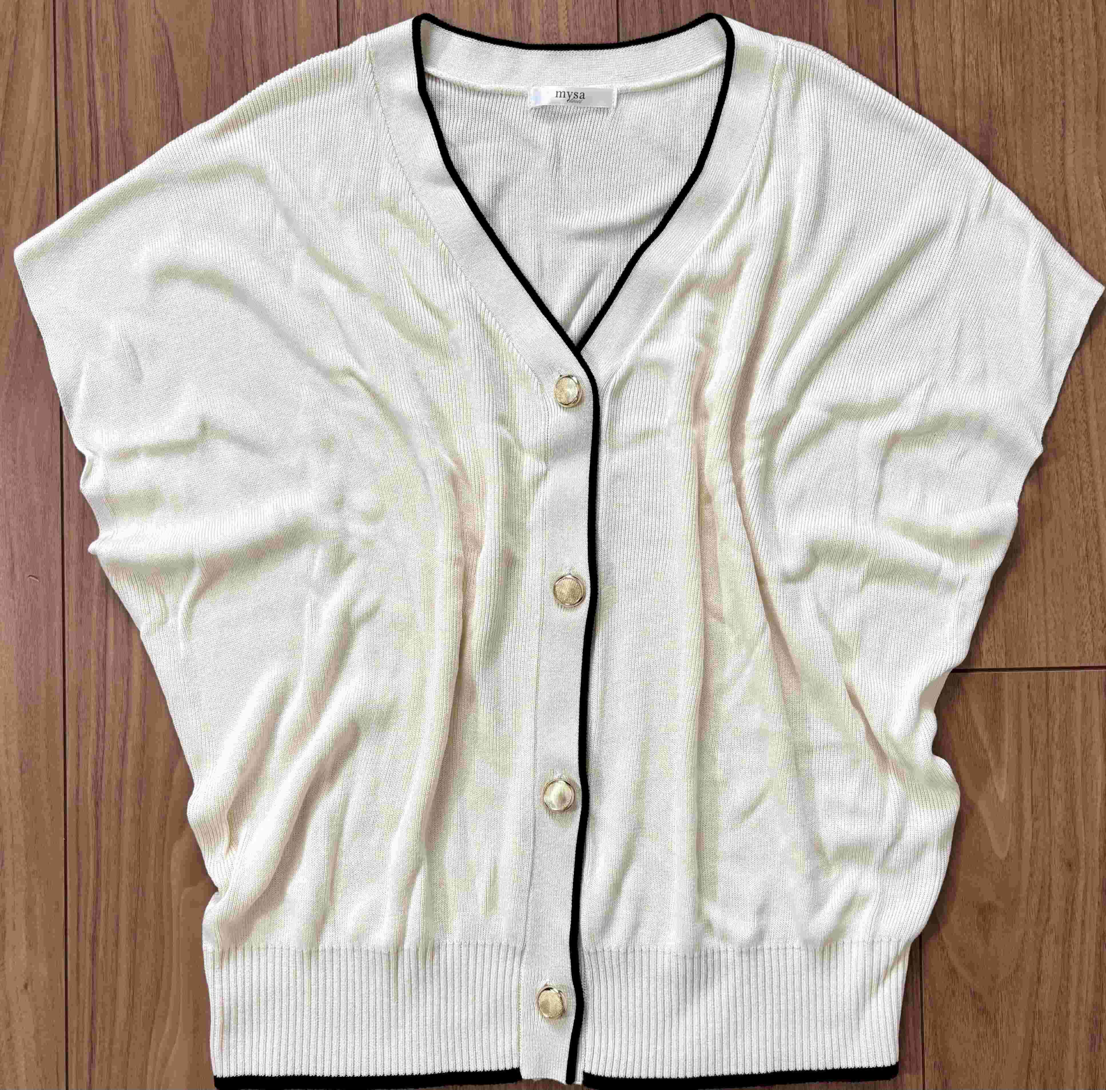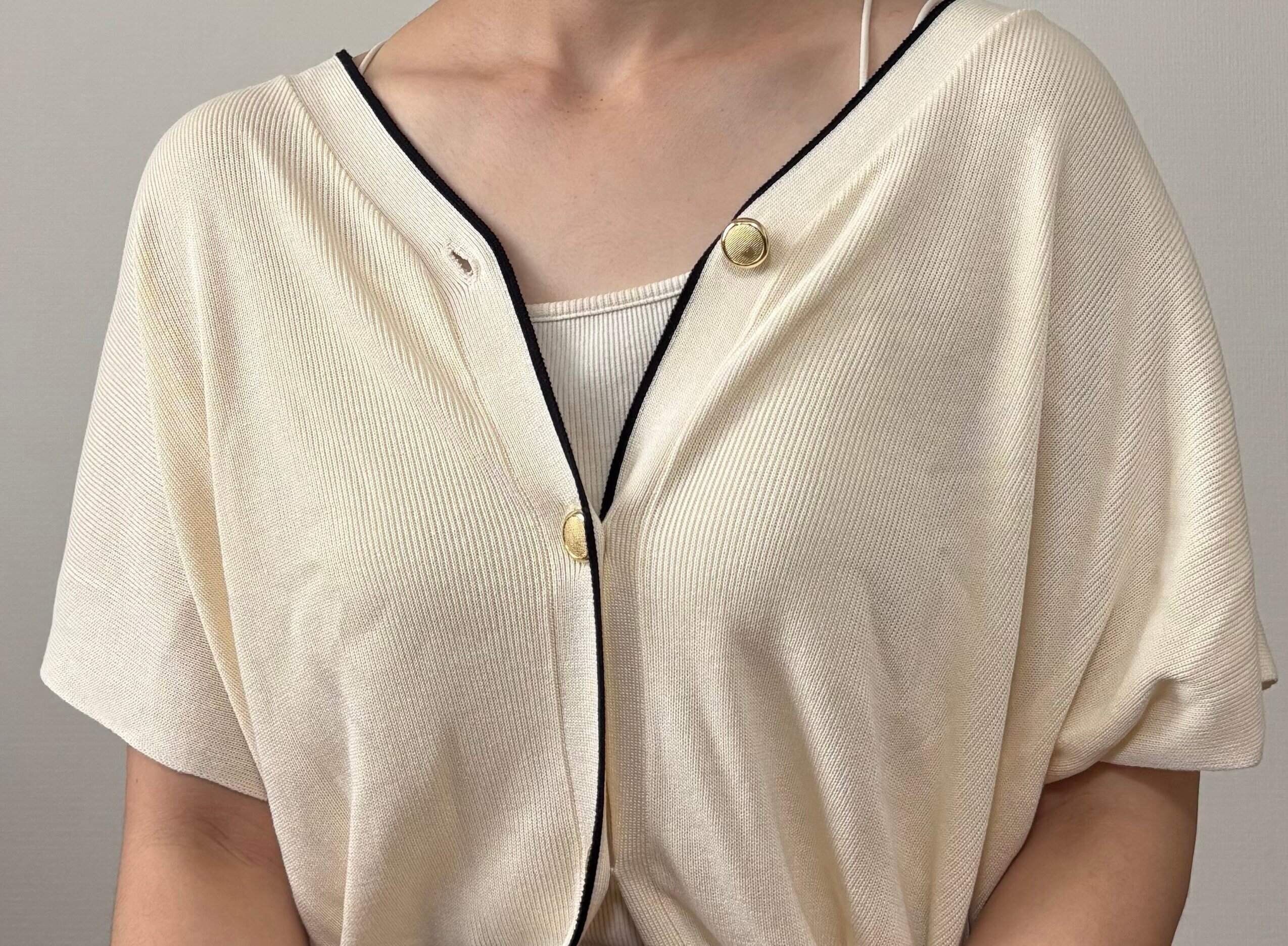 高級感のある前ボタンに配色のパイピングがアクセントになったニットベストです。