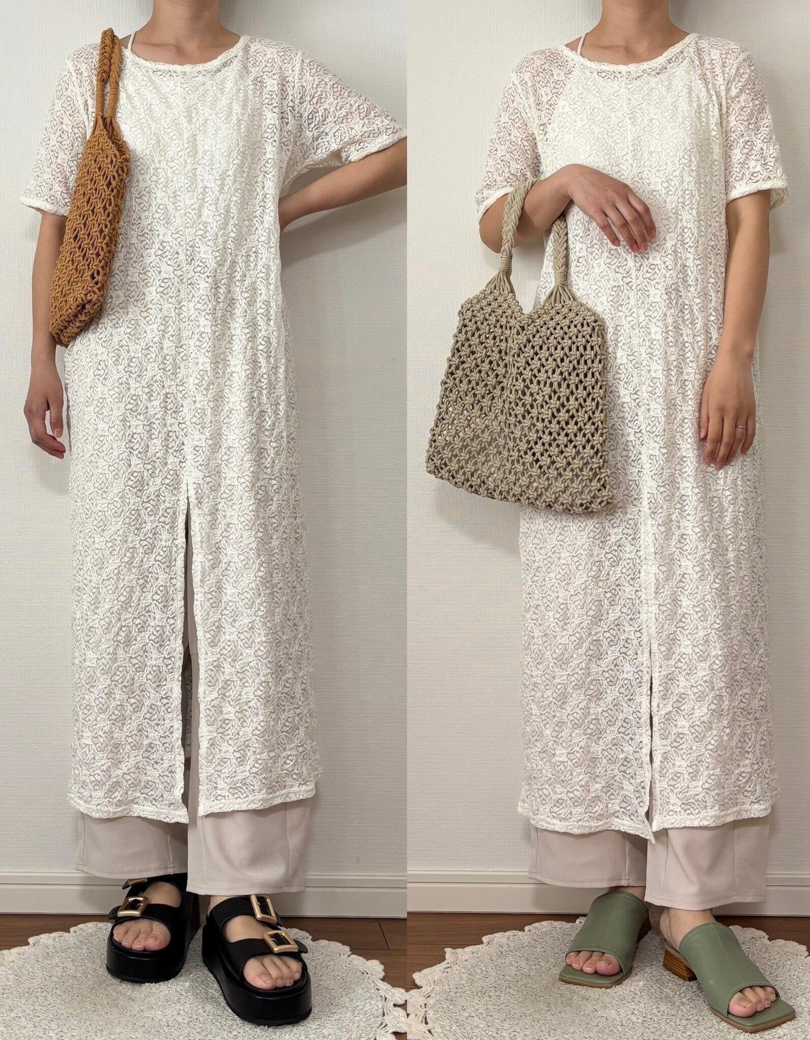 生地も薄くサラッとしており夏仕様なので、透け感が気になる方はペチパンツや透けにくいインナーを選ぶのがおすすめ。