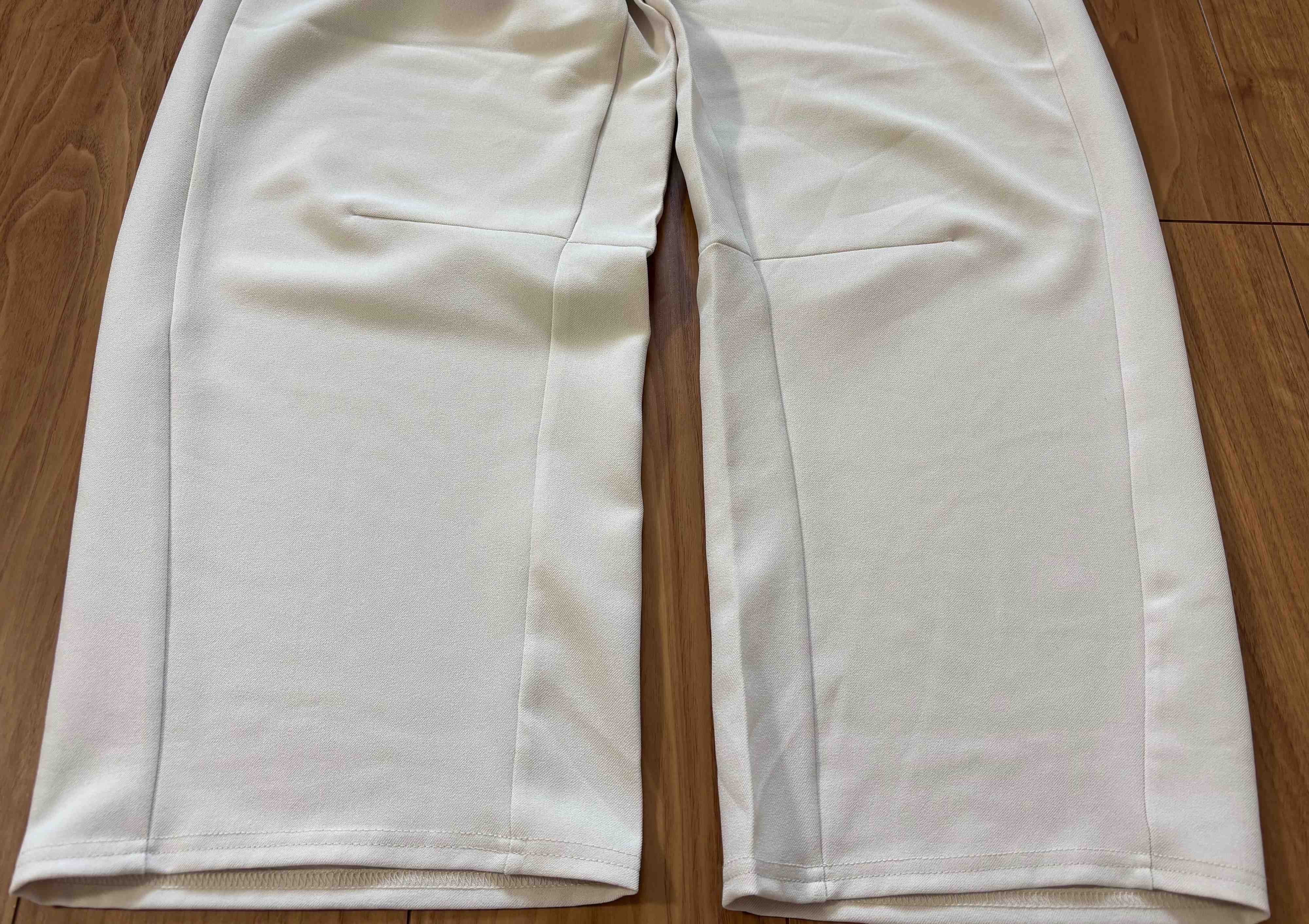 サイドの縫い目が内側に入っていくようなデザインと膝のあたりに真横に入った縫い目が珍しい!