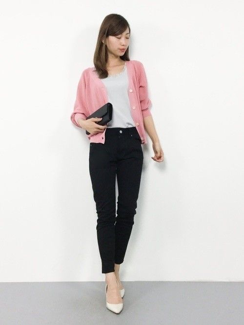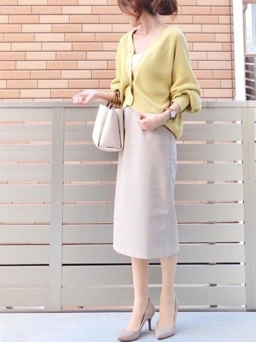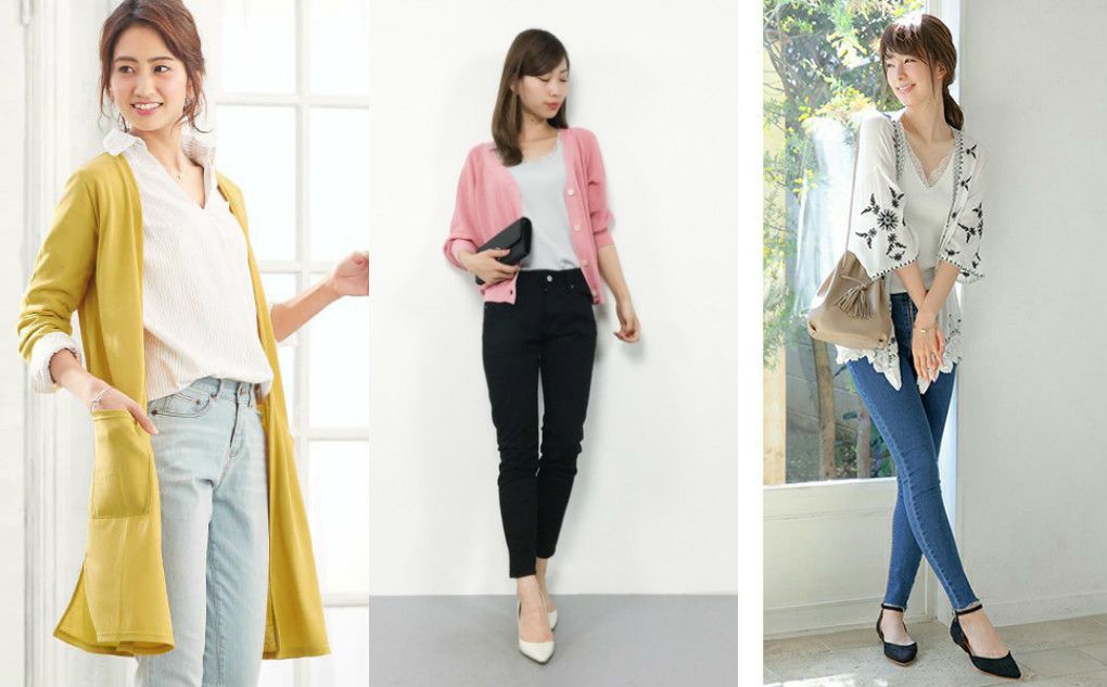 オフィスでは落ち着いたデザインの服を着る人が多いですよね。女性らしいカラーやデザインの羽織りアイテムを取り入れて、コーデのアクセントに。