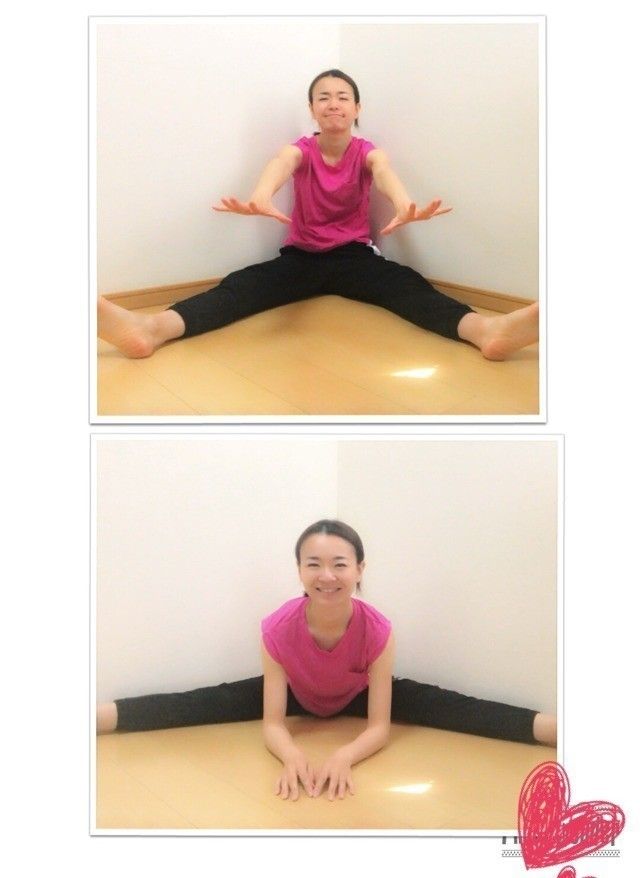 「夢の開脚!まず開脚はぐいぐい無理に行わないこと。痛いところ、無理しないでできる範囲で、行うのが鉄則です。さらに、体を倒すよりもその前の準備が重要!」(原奈美さん)