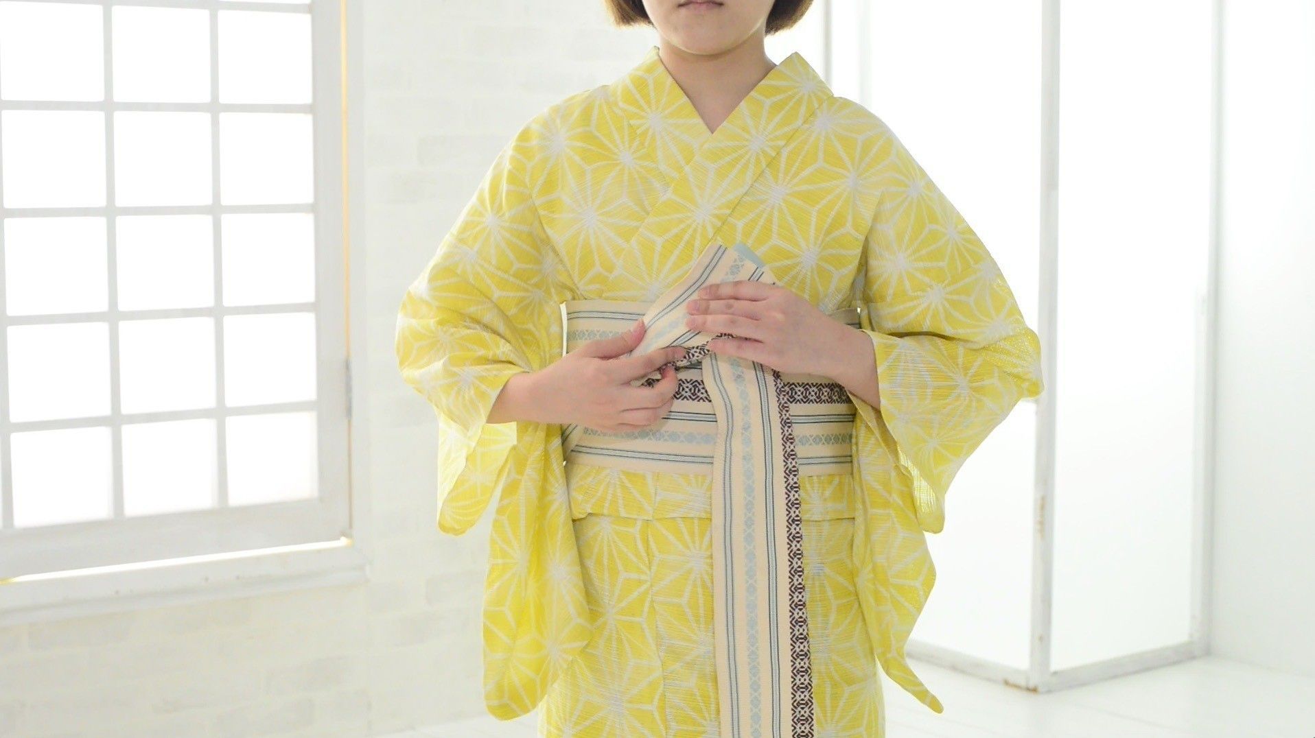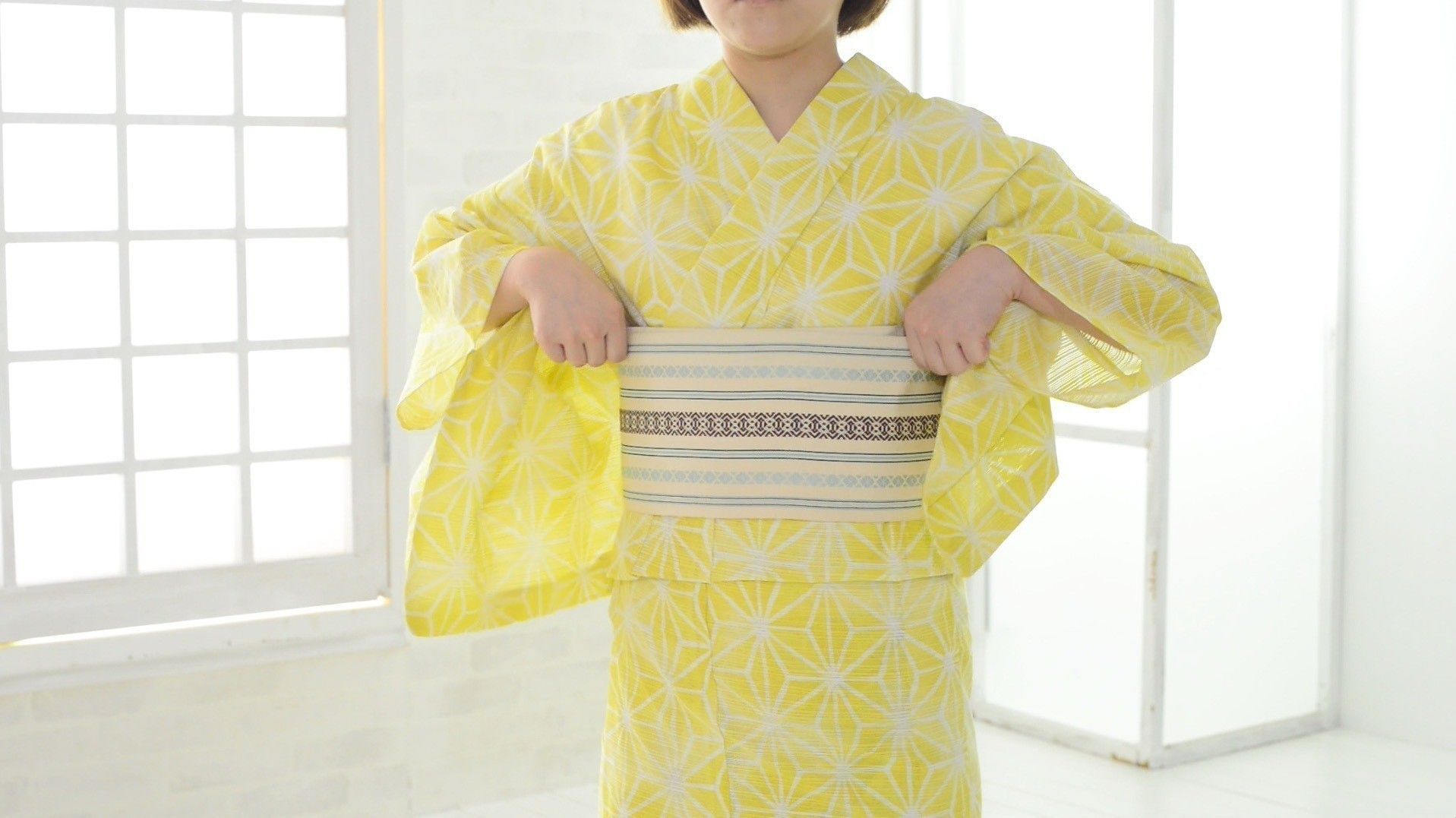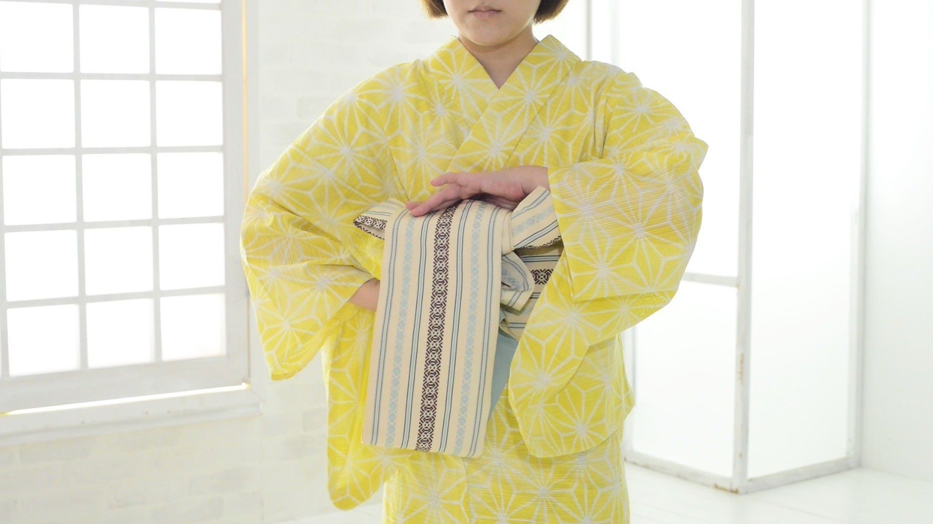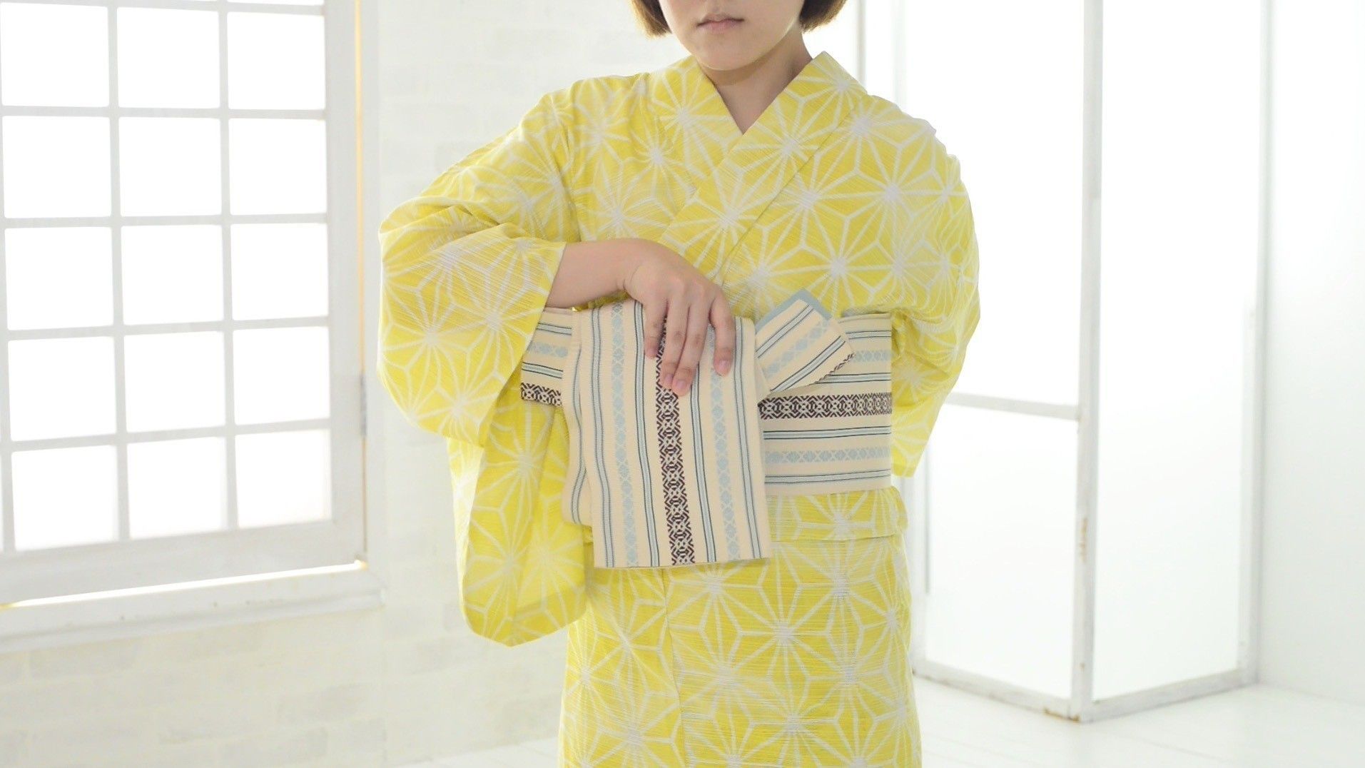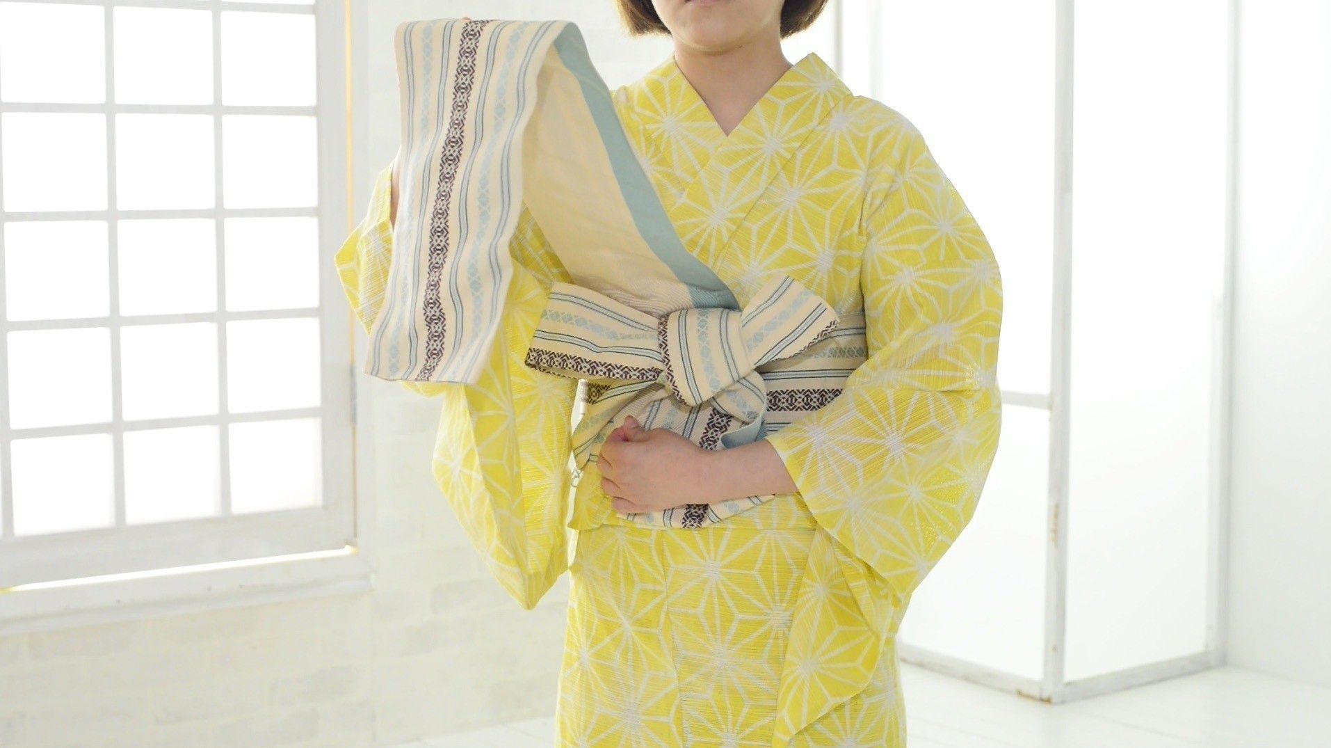 帯は、体に巻き始める方の端から数十センチを「て」、体に巻いた後の羽根を作る部分を「たれ」と呼びます。浴衣の帯結びでよく使われる半幅帯には、「て」と「たれ」の区別がなく、どちらから結んでもOK。ただ、一度結ぶと帯に折り線がつくので、どちらか片方を「て」と決めておくのがおすすめです。