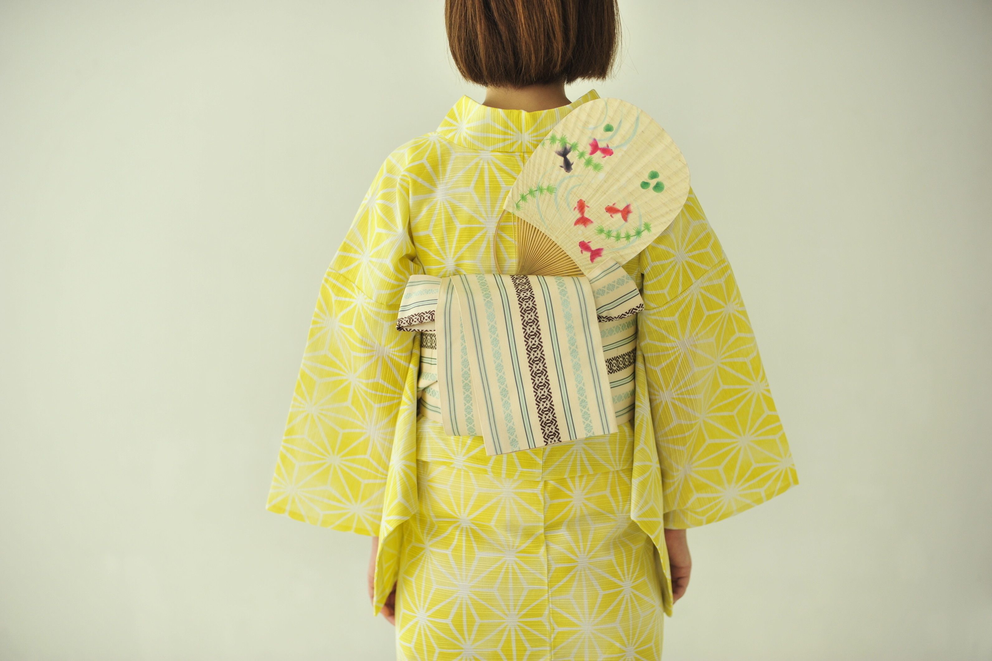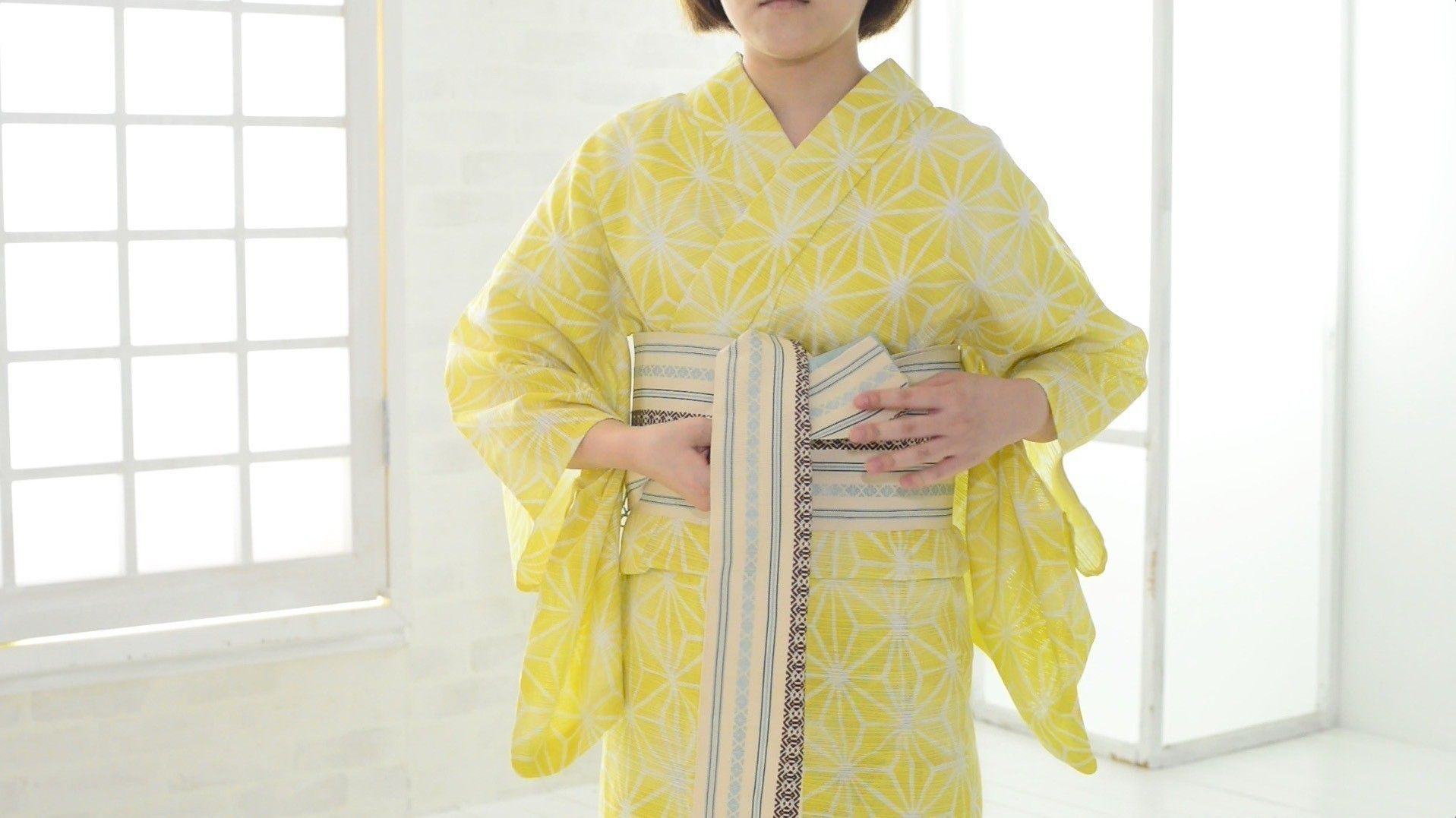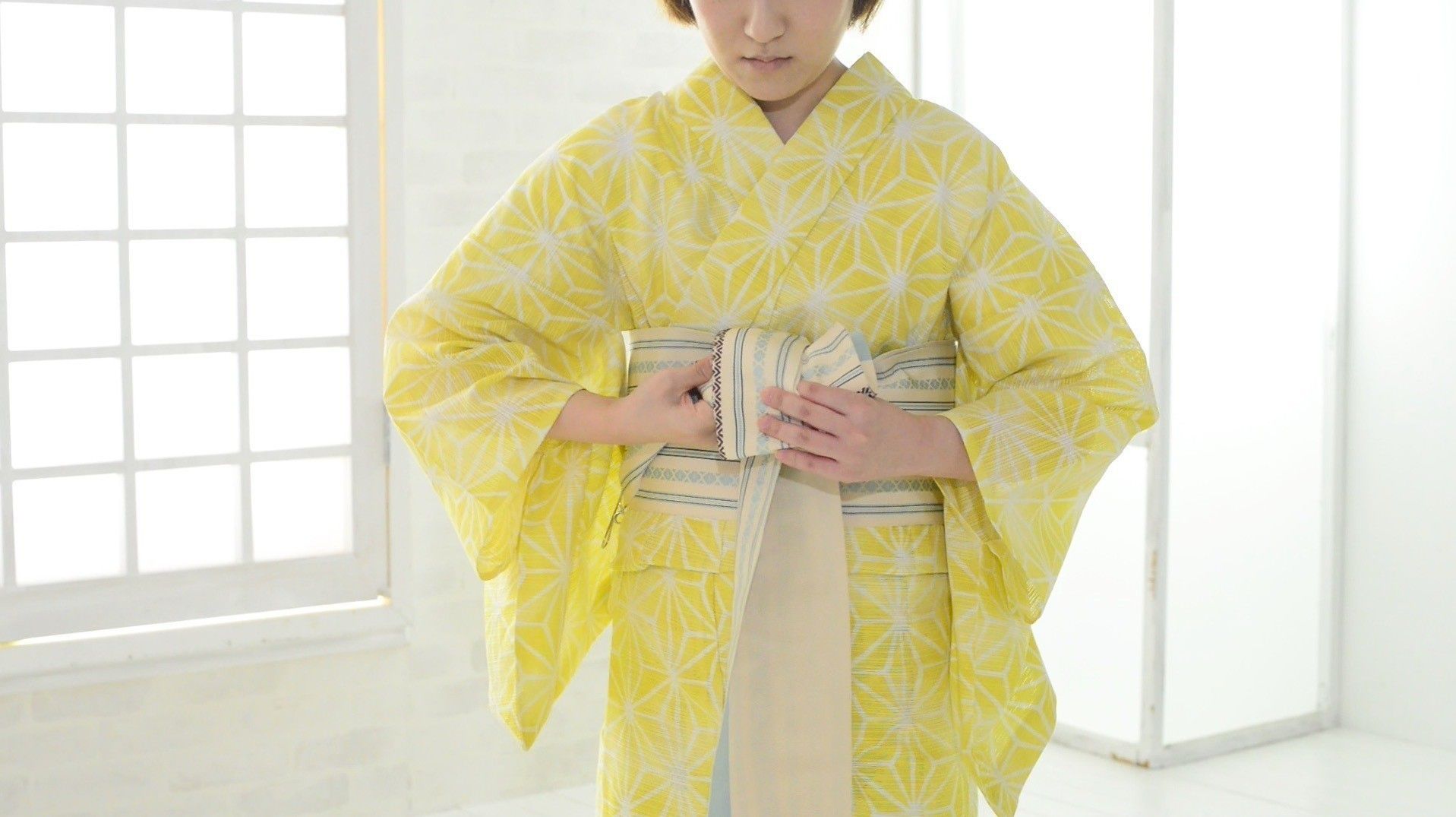 小さめの羽根が特徴の「割角出し(わりつのだし)」は、文庫系の帯結びと比べると、やや落ち着いていてクールな印象。一見難しそうに見えますが、結び目が隠せる帯結びなので、実は初心者にもおすすめです。