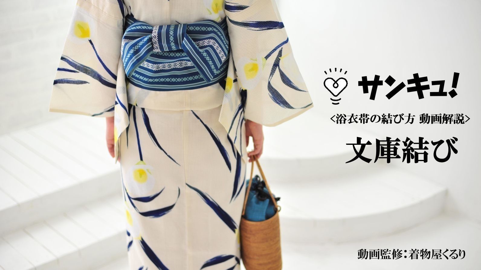 浴衣の帯結びの中で、最もベーシックな文庫結び。リボンのような羽根を立体的に結ぶことで、大人っぽさと可憐さを持ち合わせた雰囲気に。文庫結びは色いろなアレンジも楽しめるので、まずは基本の結び方をマスターしましょう!