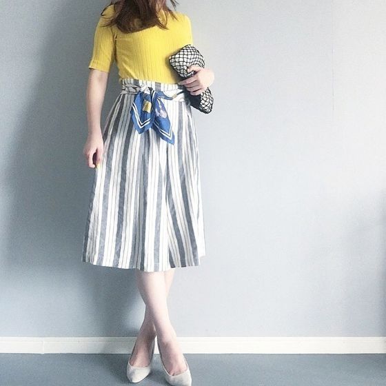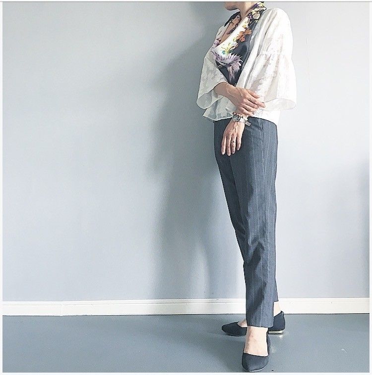 【ストレートタイプ】の方は引き算コーデが得意!ゆえにスカーフを巻く際はボリュームが出にくいシンプルな巻き方がベスト!